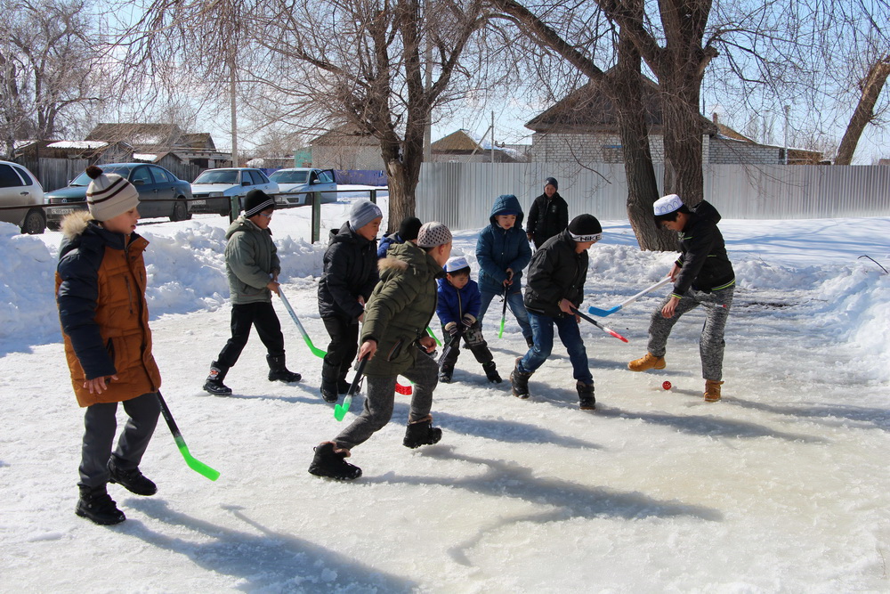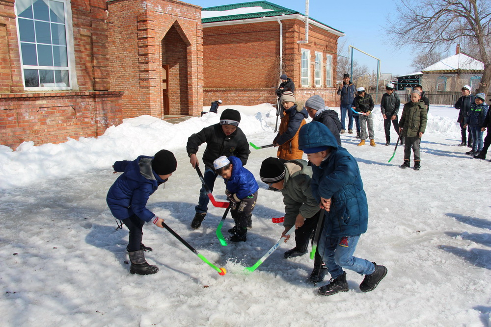 В дни школьных каникул имам-мухтасиб решил собрать вместе ребят из разных сел и провести для них хоккейный матч. Разделившись на команды и получив клюшки, мальчики приступили к игре. Матч проходил во дворе мечети и собрал немало зрителей.
