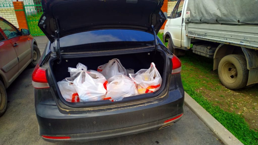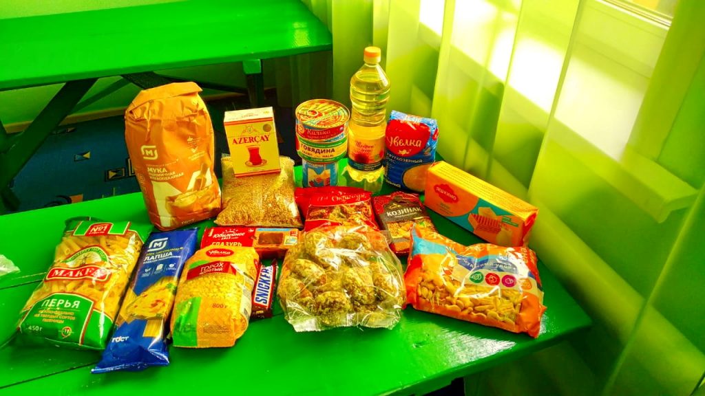 На средства неравнодушных людей были приобретены продукты первой необходимости: мука, растительное масло, мясная тушенка, рыбные консервы, рис, макаронные изделия, гречневая крупа, горох, печенья, вафли и сладости. Затем были сформированы и развезены по адресам 56 продуктовых комплектов.