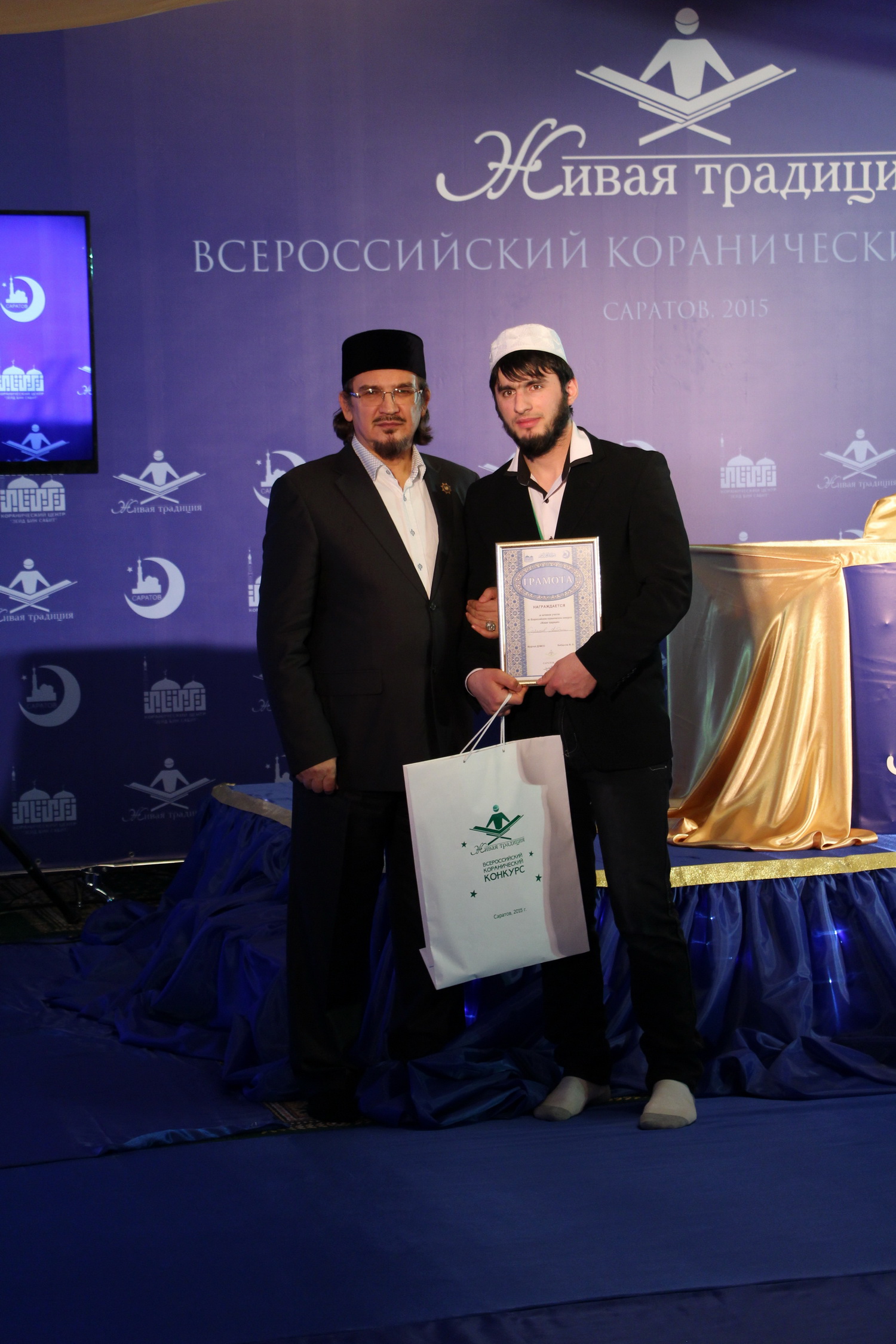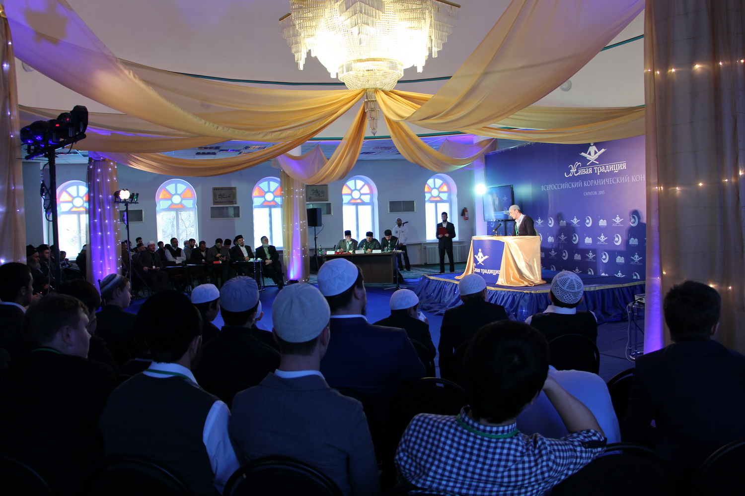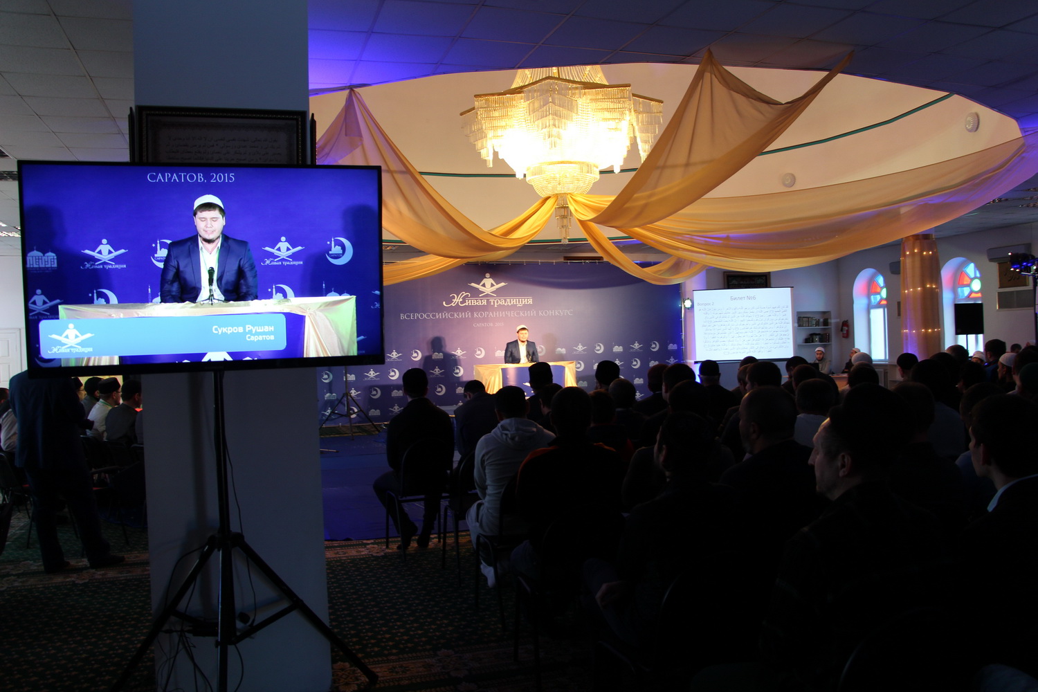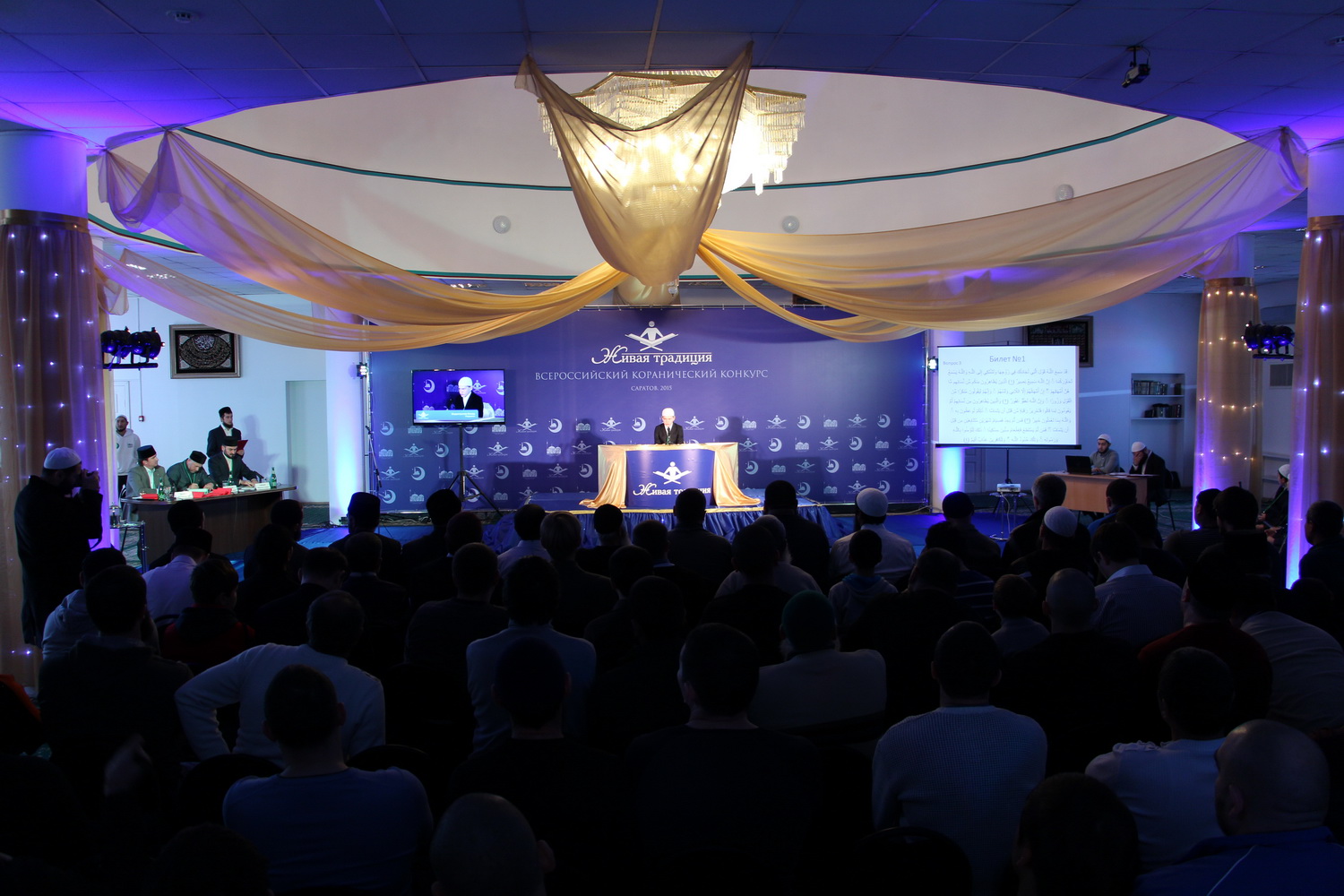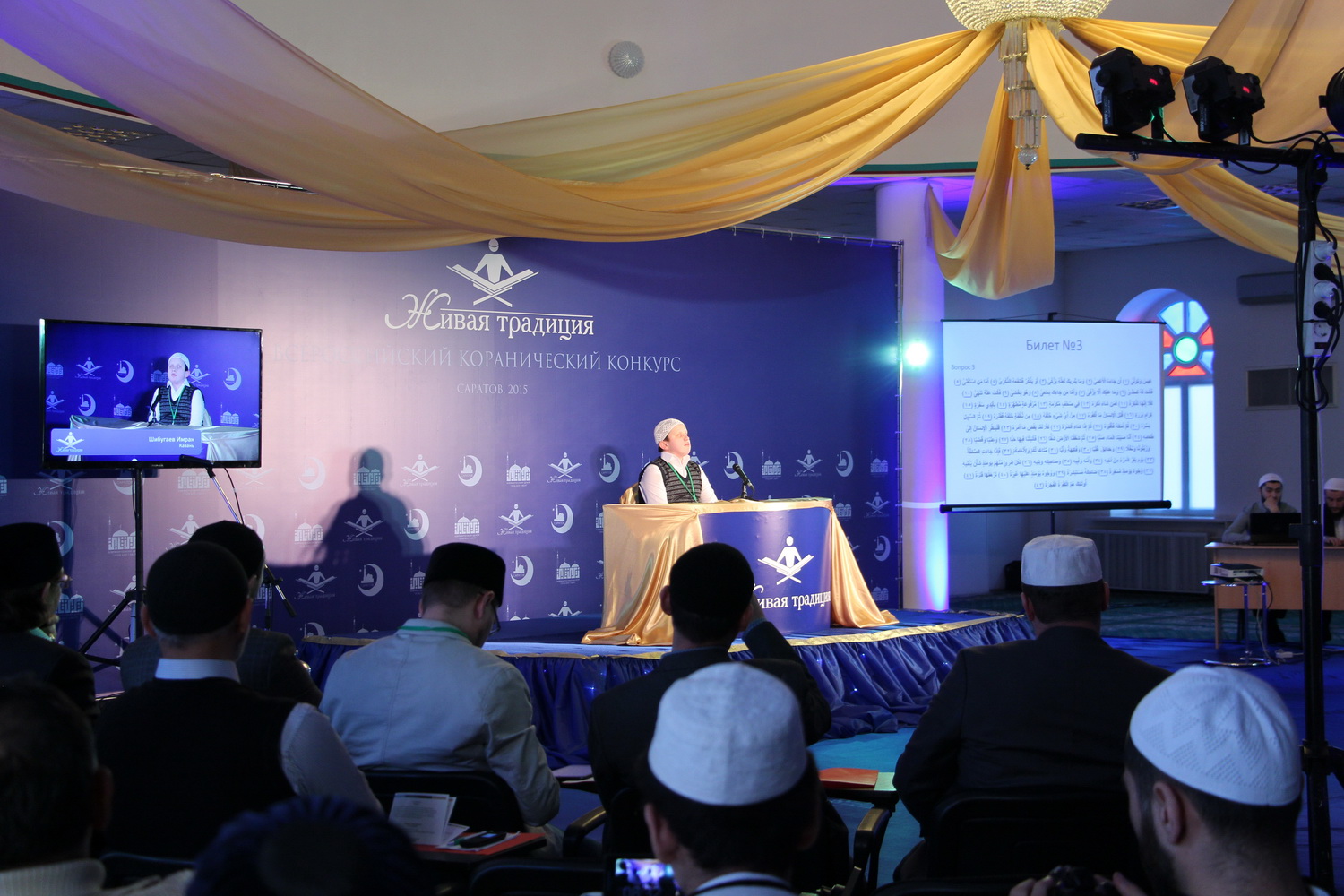 В эти выходные 28 и 29 ноября в Саратовском Исламском комплексе состоялся ежегодный III Всероссийский конкурс чтецов Корана среди мужчин «Живая традиция». В состязании принимали участие 35 человек из 10 регионов России. В первый день прошел отборочный тур, по результатам которого в финал вышли лишь 15 человек из семи субъектов РФ. В главном состязании не смогли выступить чтецы из Перми, Пензы и республики Крым.