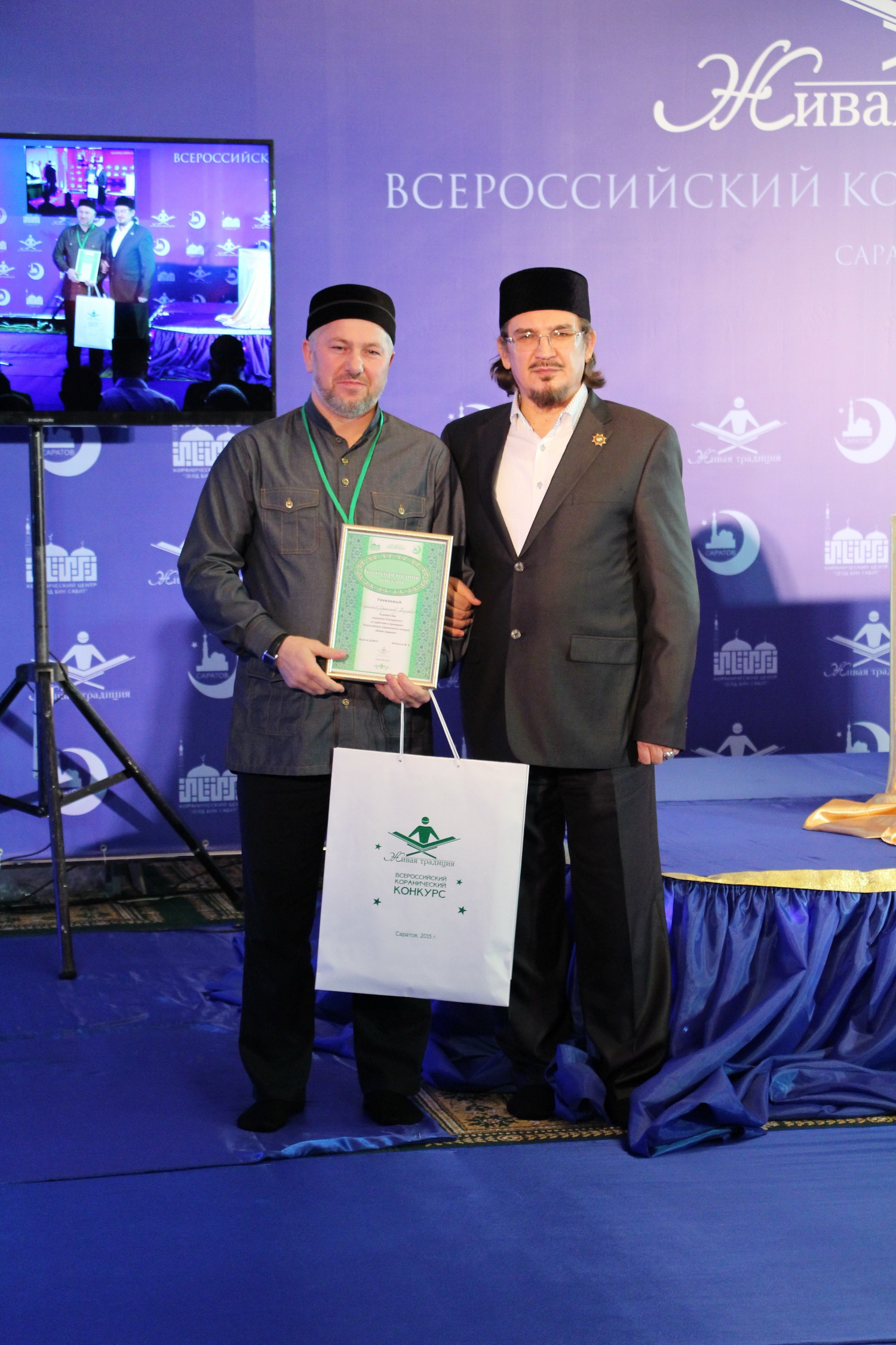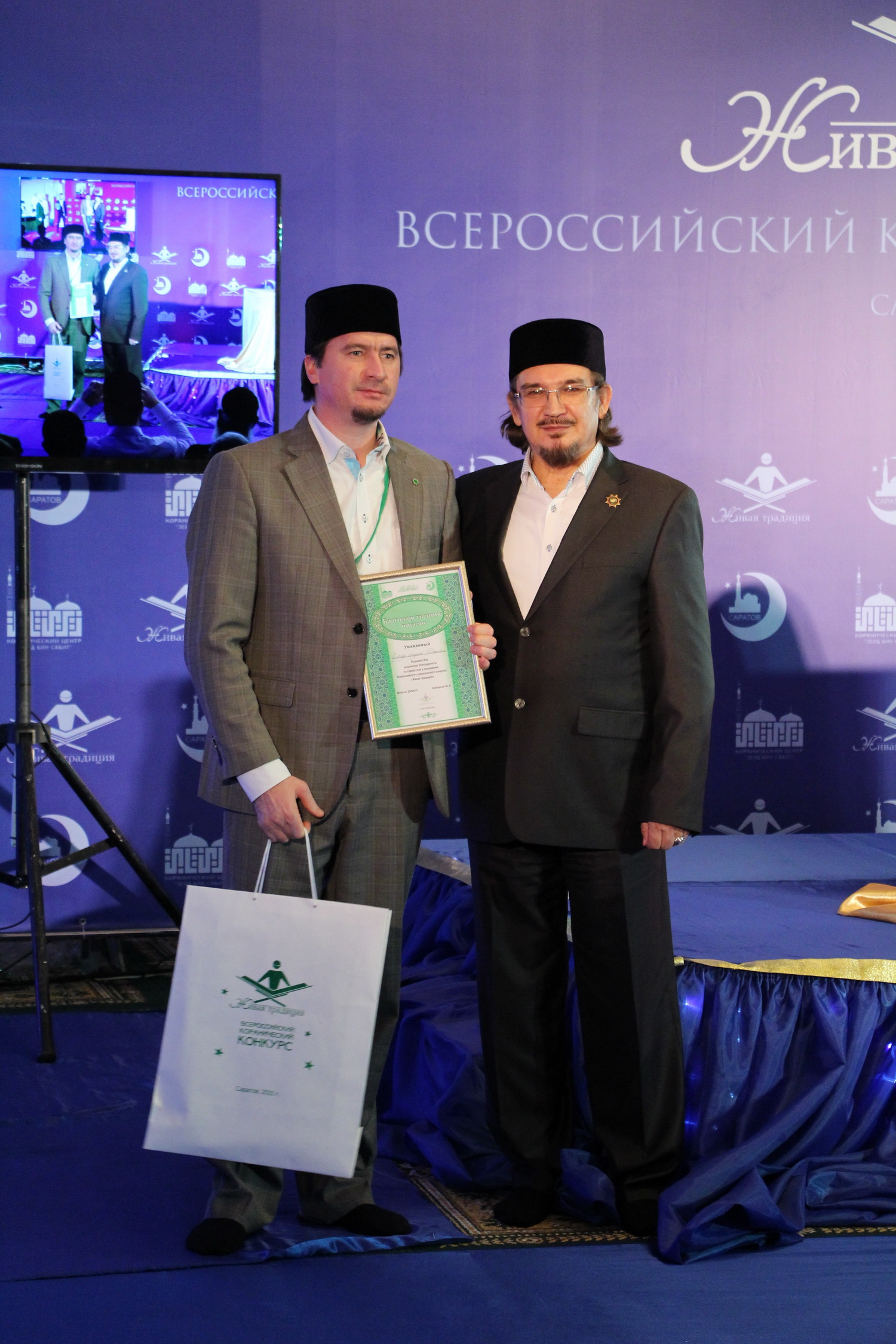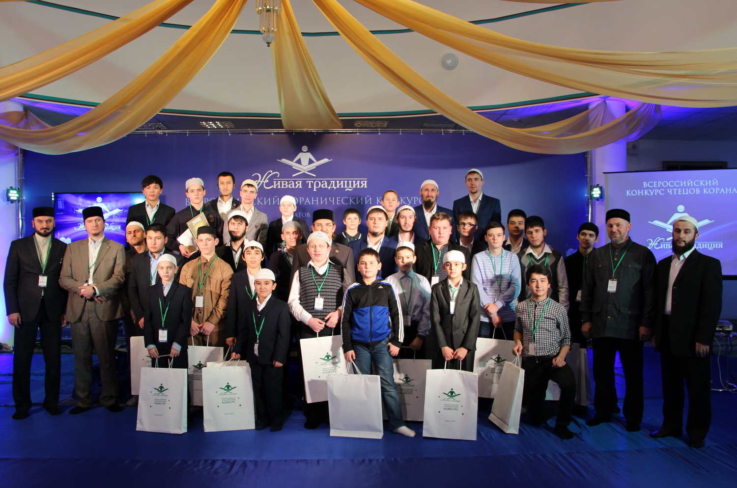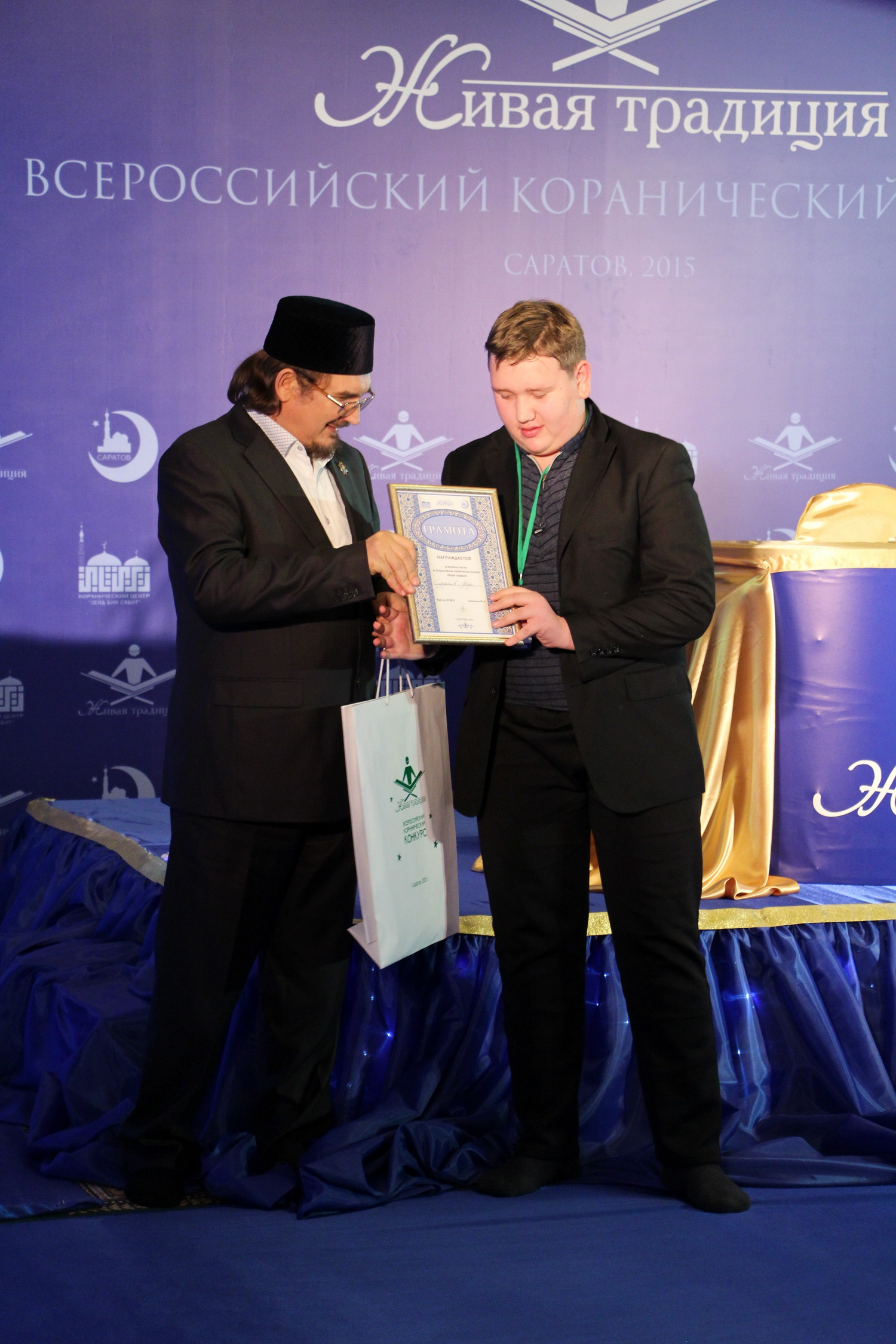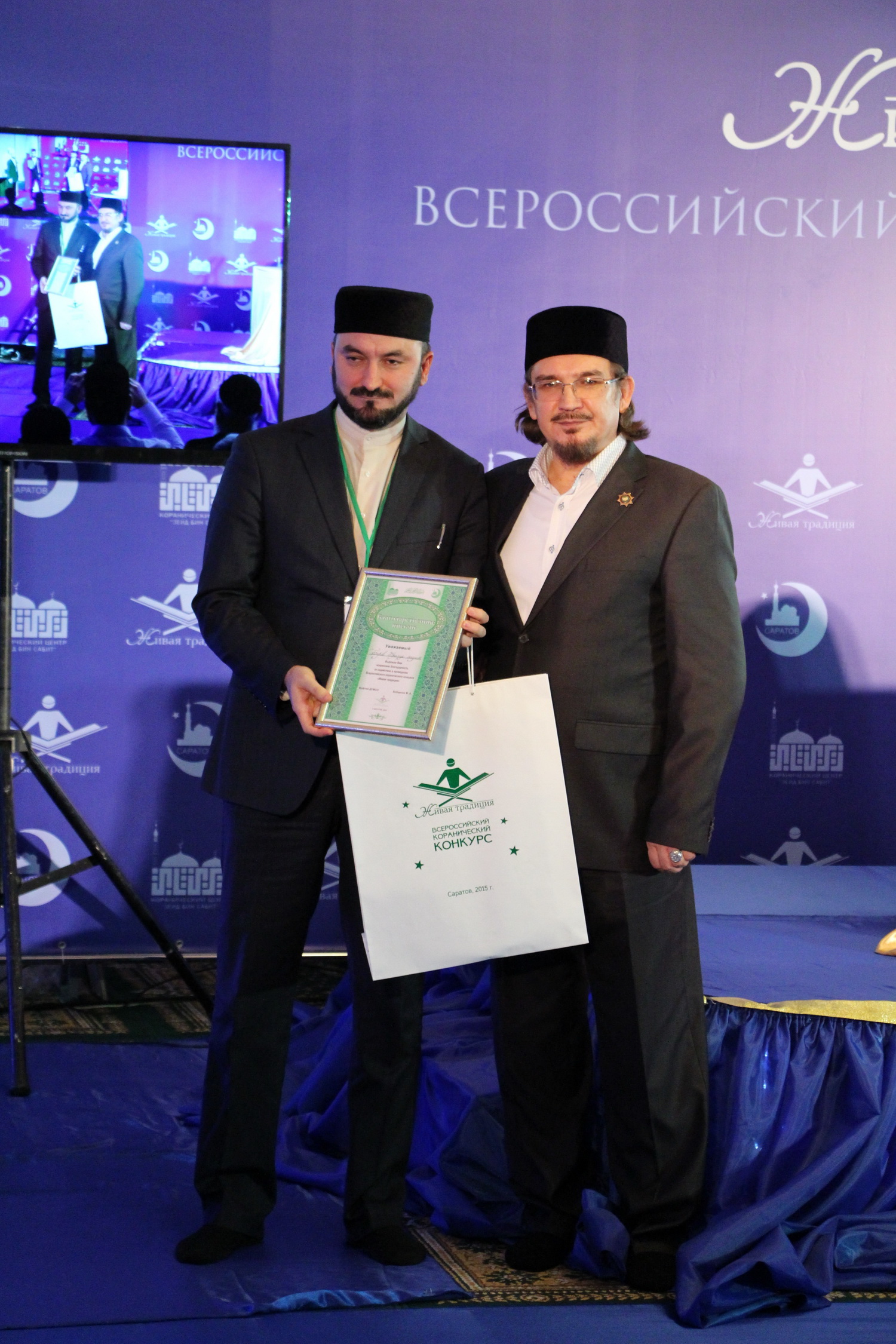 В эти выходные 28 и 29 ноября в Саратовском Исламском комплексе состоялся ежегодный III Всероссийский конкурс чтецов Корана среди мужчин «Живая традиция». В состязании принимали участие 35 человек из 10 регионов России. В первый день прошел отборочный тур, по результатам которого в финал вышли лишь 15 человек из семи субъектов РФ. В главном состязании не смогли выступить чтецы из Перми, Пензы и республики Крым.