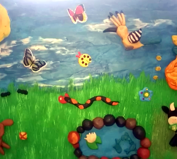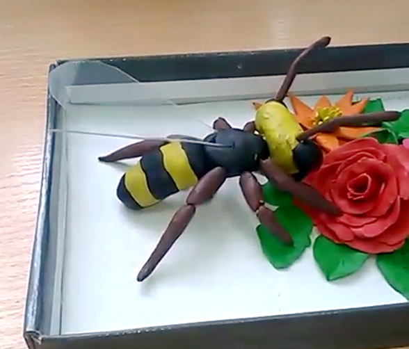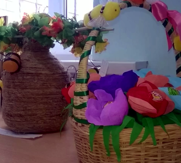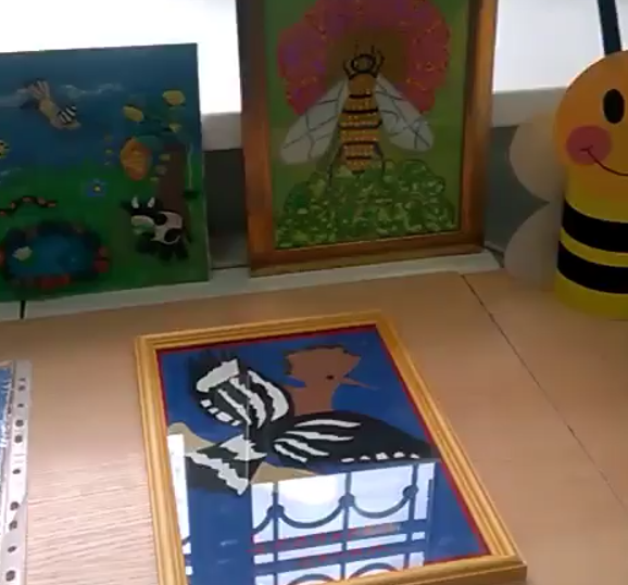 Мальчики и девочки своими руками смастерили необычные поделки и нарисовали красочные рисунки, где изобразили пчел, пауков, удода, кита и др.
