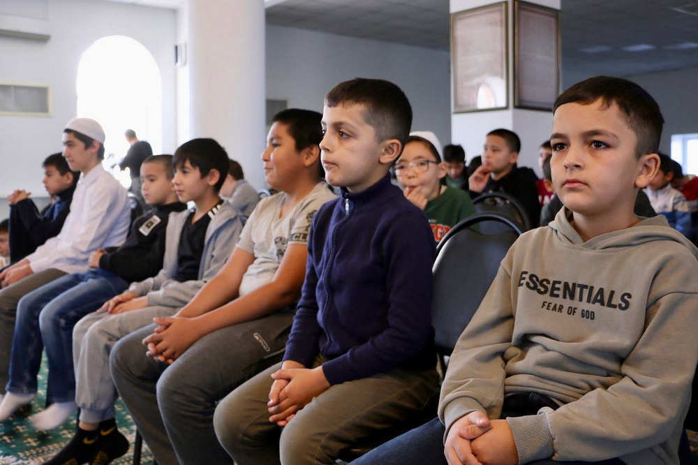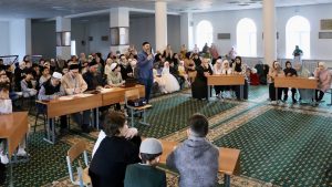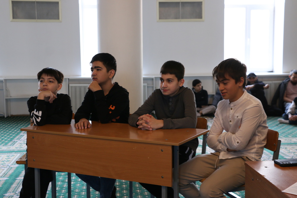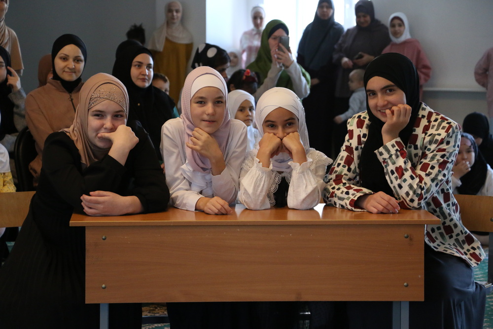 В перерывах между раундами юные ученики «Мактаба» прочитали стихи, а зрители могли получить подарки, правильно ответив на тематические вопросы от преподавателей воскресной школы.