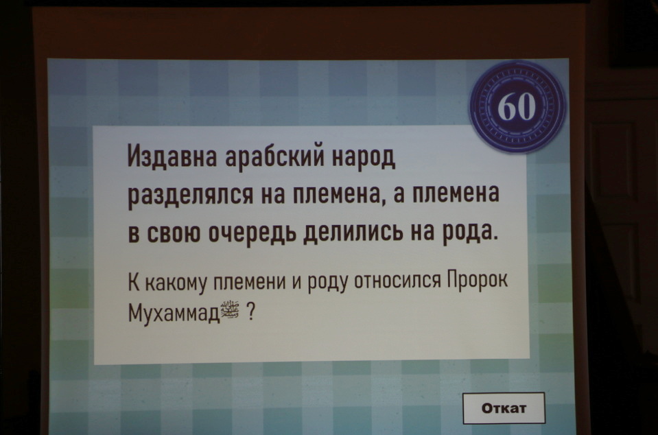 Викторина проходила в формате телевизионной игры «Своя игра». Ведущим был преподаватель воскресной школы «Мактаб» Дамир Татлов. Четыре команды по четыре человека в возрасте 11–15 лет отвечали на вопросы различной сложности. Они касались детства и юношества Мухаммада (мир ему), начала пророчества и истории первых мусульман.