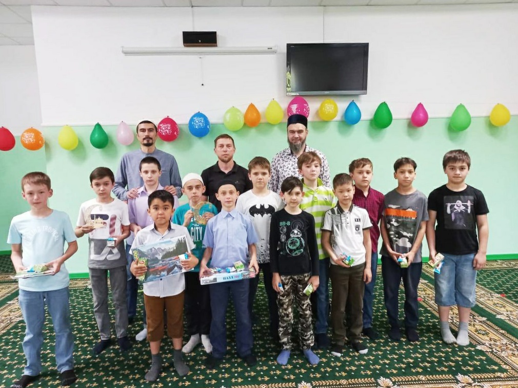 Преподаватели воскресной школы подготовили для юных мусульман познавательную викторину с тематическими загадками и подвижными играми. В этот день все дети получили сладкие подарки за их старание.
