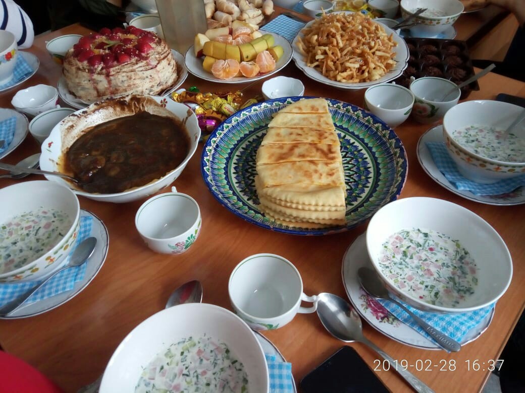 Жительницы города в рамках вкусного поединка приготовили татарский чак-чак, дагестанский пирог, азербайджанскую пахлаву, чеченские чуду, таджикский плов, русскую окрошку и др.