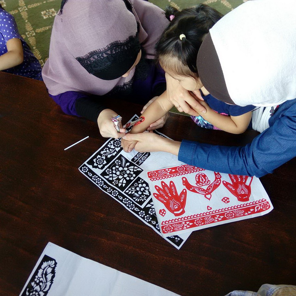 Приятным сюрпризом для девочек на празднике стал уголок с мехенди. Всем желающим нанесли прекрасные узоры на руки.