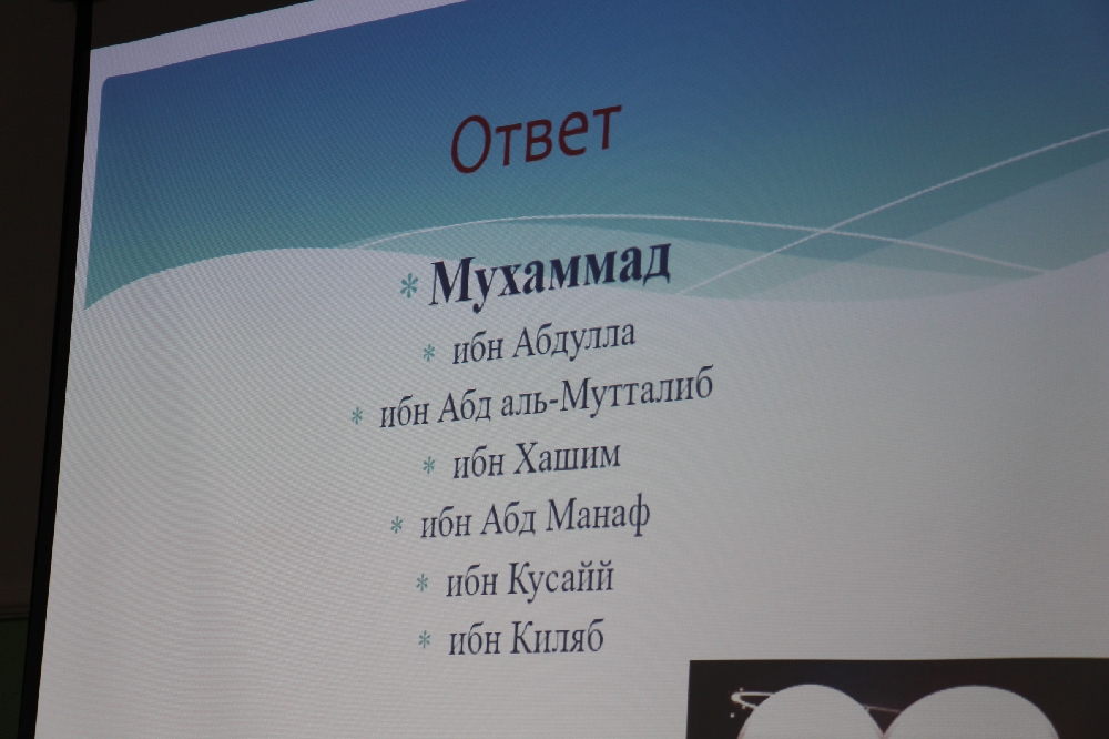 После этого ведущий интеллектуальной игры, заместитель директора медресе Али-хазрат Хабибуллин предложил студентам разных курсов вечернего отделения ответить на вопросы. Они касались происхождения Мухаммада (мир ему), его семьи, событий, происходивших до его рождения и в ранние годы. Также участники викторины вспоминали важные моменты до пророчества Мухаммада (мир ему) и основные вехи после ниспослания первых аятов Священного Корана.