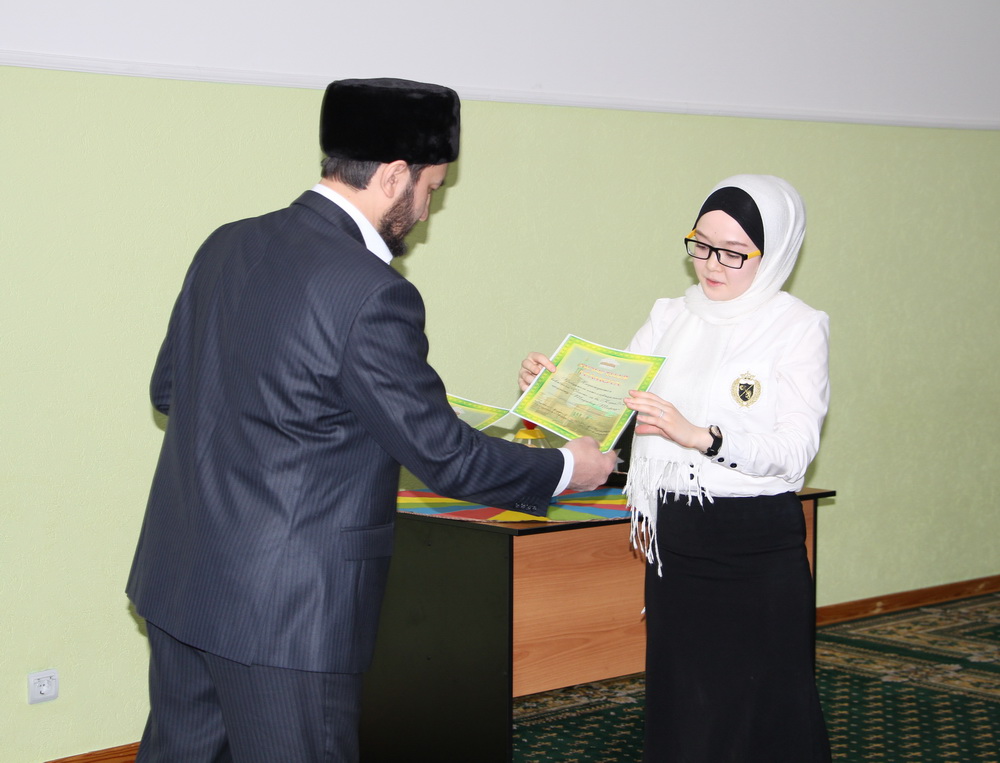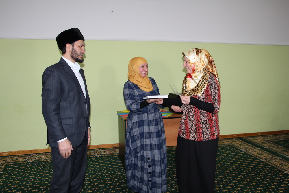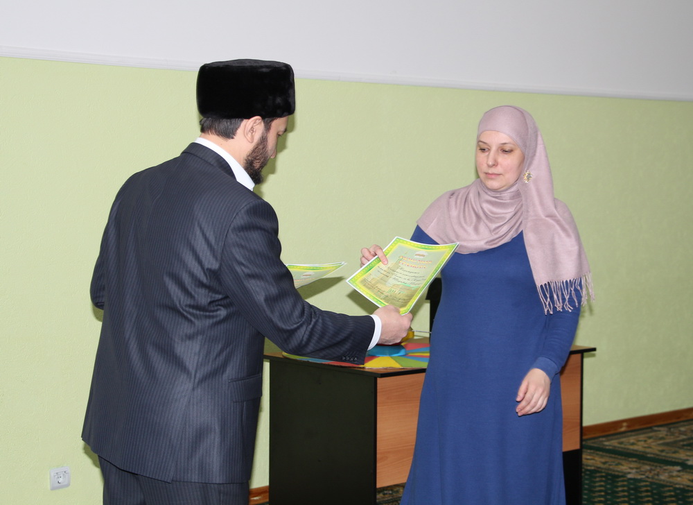 В торжественной обстановке также были вручены сертификаты участникам олимпиады по акыде, фикху и сире, которая ранее прошла в медресе в виде тестирования. Ее победителем стала выпускница исламского образовательного учреждения, ныне преподаватель воскресной школы «Мэктэб» Ирина Магомедова.