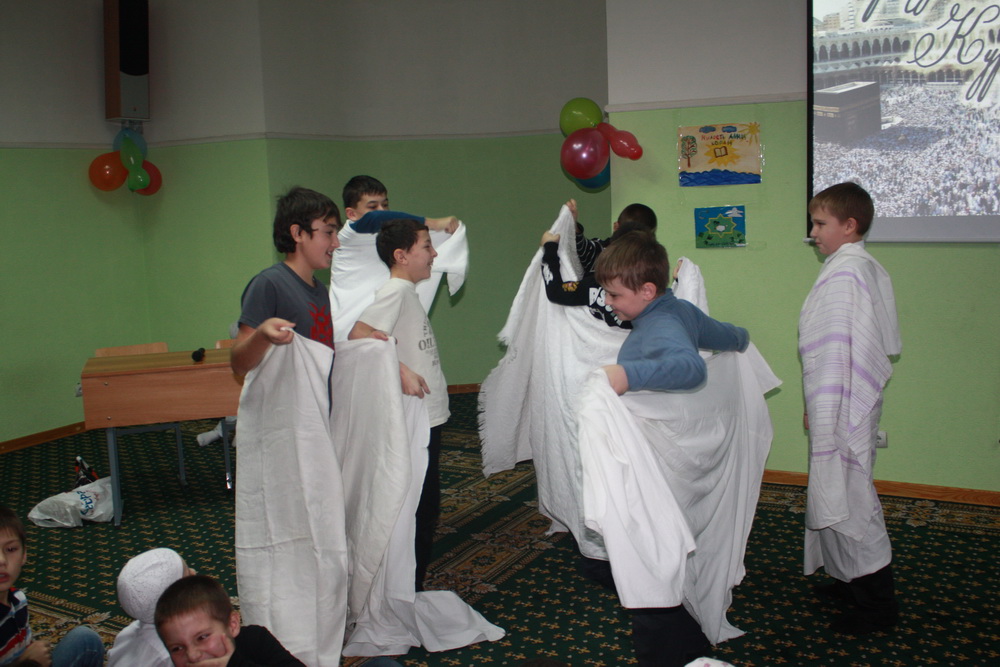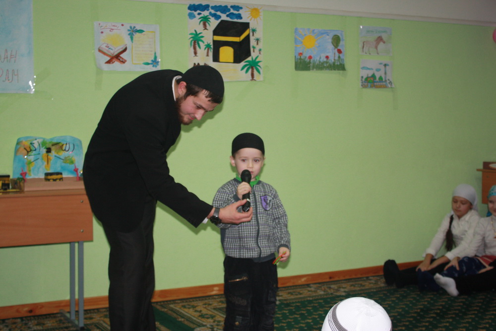 Ребята прочитали выученные стихотворения об Исламе и хадисы. Кроме того, ученики старших групп показали сценку о Хадже.