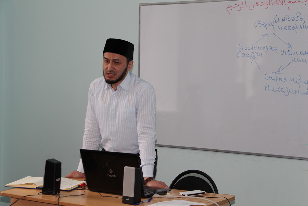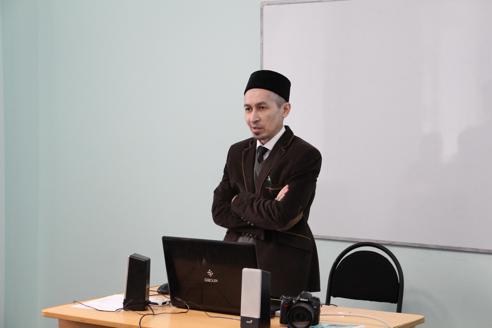 В первой части заседания с докладом выступил кандидат исторических наук, заместитель директора медресе «Шейх Саид» Али-хазрат Хабибуллин. Он осветил общие вопросы об исламе и исламском вероучении, акцентируя особое внимание на обязанностях мусульман. Также Али-хазрат привел поучительную притчу и представил видеоролик «Ислам проклинает террор».