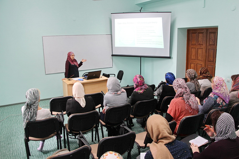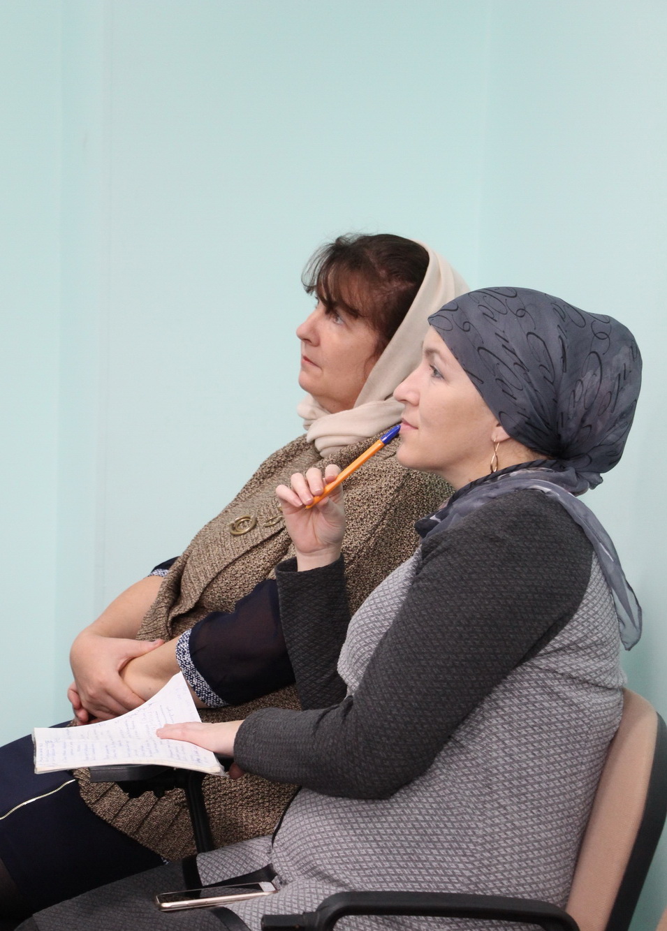 Перед началом занятий для учителей провели экскурсию по Исламскому комплексу и рассказали про деятельность Духовного управления мусульман региона. Многие из них впервые побывали в Соборной мечети, поэтому интересовались ее интерьером и задавали вопросы относительно исламских ритуалов.