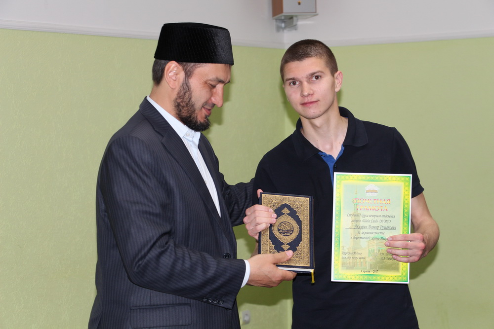 В завершении мероприятия состоялось торжественное награждение. Проявившим социальную активность, особую тягу и усердие в получении знаний студентам вручили почетные грамоты и экземпляры Священного Корана.