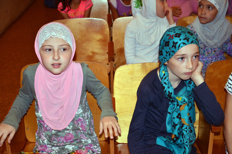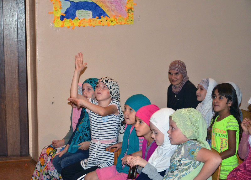 Вечером в актовом зале дети из разных отрядов собрались поддержать своих подружек, которые решили участвовать в конкурсе. Обязательное условие — часть текста Священного Корана необходимо было выучить во время пребывания в лагере. Всего в состязании приняли участие 12 человек.