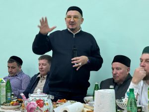 Также верующих поприветствовал Мукаддас-хазрат Бибарсов. В своем слове он напомнил о том, что смысл поста в месяц Рамадан — это не физический голод. Главная цель — воспитать свою внутреннюю духовную часть и укрепить иман. Также глава ДУМП затронул такие глубокие темы, как самоидентичность мусульман, отметил важность знания своих исторических корней, родного языка и культуры.