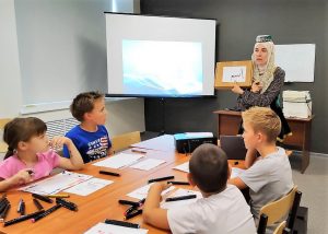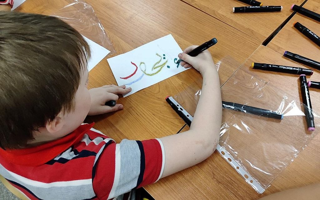 Затем мальчики и девочки познакомились с несколькими методиками написания арабских букв и попробовали написать маркерами арабские слова.