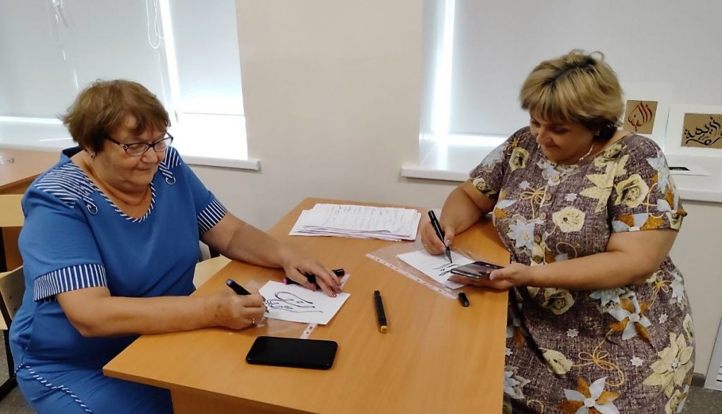 Руководитель клуба по интересам Озинского центра национальных культур, преподаватель воскресной школы при мечети «Сания» поселка Озинки Альфия-ханум Каримова провела мастер-класс по каллиграфии для детей.