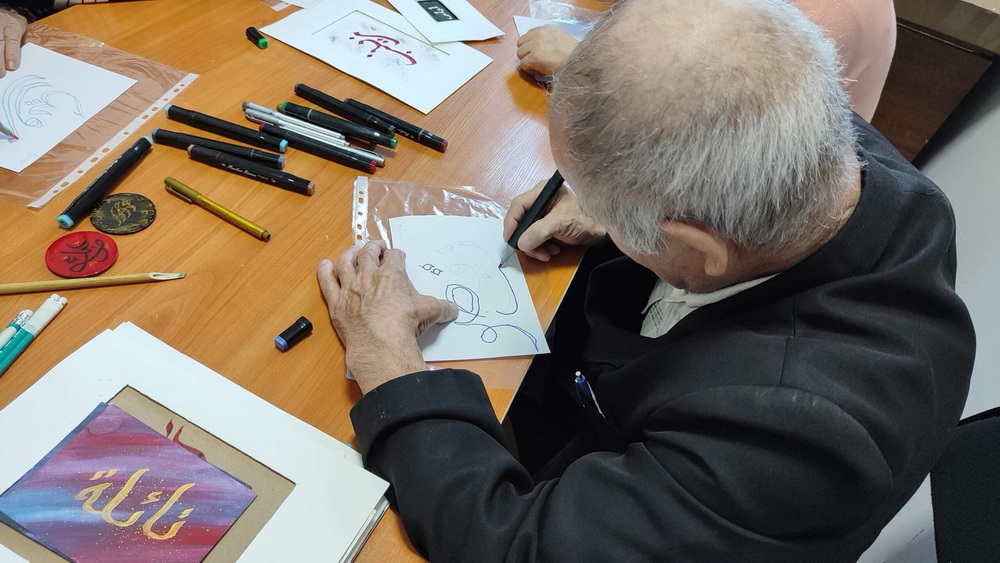 Собравшиеся познакомились с новым видом искусства и попробовали себя в нем. Они раскрашивали свои имена, написанные арабской вязью, а также самостоятельно написали по-арабски слово «имя».