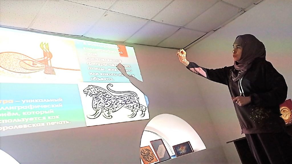 Также собравшиеся узнали о происхождении, истории и развитии искусства татарского шамаиля, как синтеза орнамента и каллиграфии, о его связи с развитием Ислама на территории Среднего Поволжья и Приуралья.