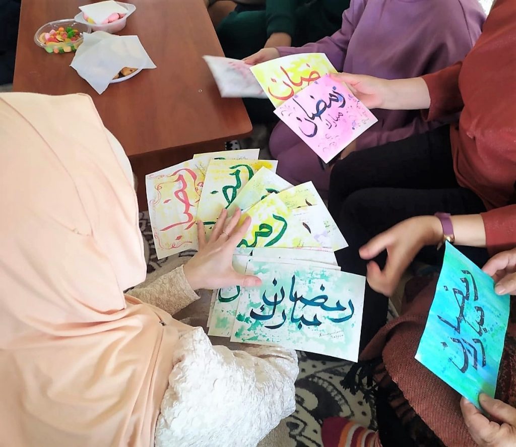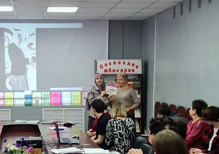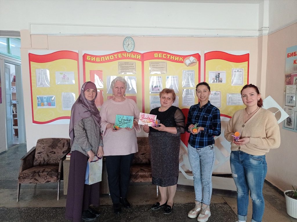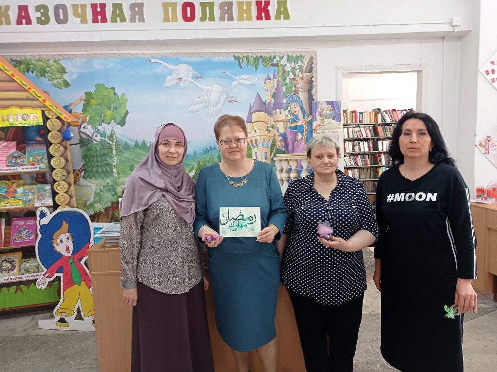 На следующий день, в Центральной библиотеке Озинского района на встрече местных поэтов Альфия-ханум Каримова поделилась радостью наступления Священного Рамадана. Она рассказала о месяце Уразы, а также подарила сотрудникам библиотеки, сотрудникам Центра национальных культур, местным поэтам тематические авторские открытки и символ Рамадана – финики.