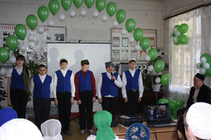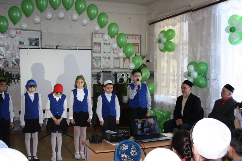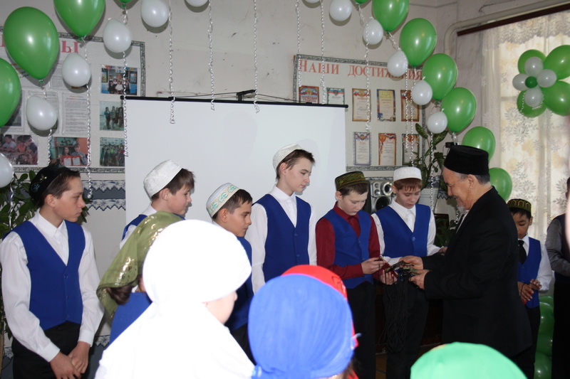 После этого учащиеся исполнили мунаджаты на татарском языке, которые разучили специально к меджлису, а собравшиеся в актовом зале прочитали салаваты.