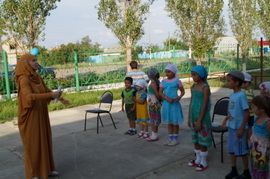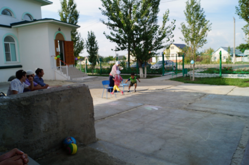 Как рассказали организаторы, спортивный праздник для детей стал одним из украшений завершения месяца Поста. Ближе к вечеру во дворе мечети собралось 13 детей от 5 до 8 лет. Малышей разбили на две команды – «Нур» и «Му’минун» («Верующие»), которым предложили выполнить различные задания.