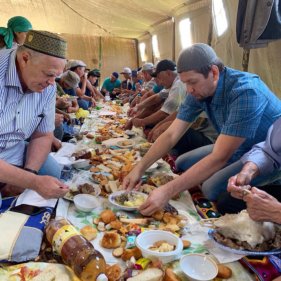 В завершении меджлиса всех пригласили за дастархан. Здесь каждый мог не только отведать праздничные блюда, но и пообщаться на различные темы.