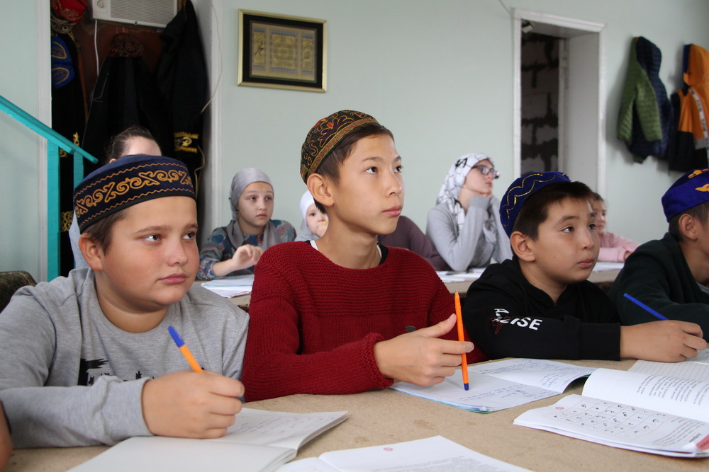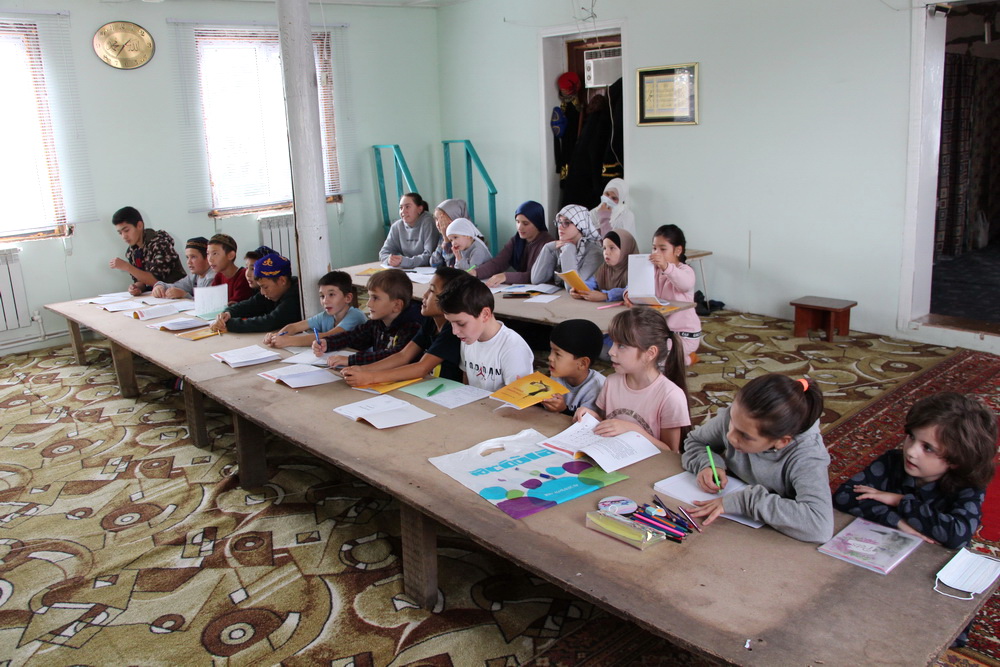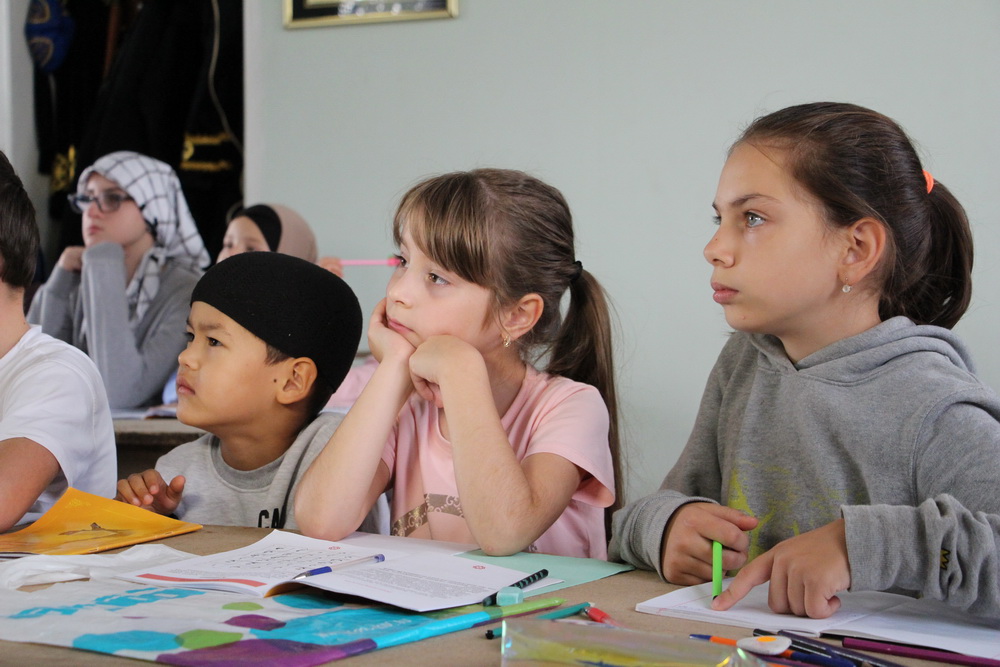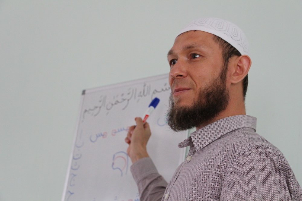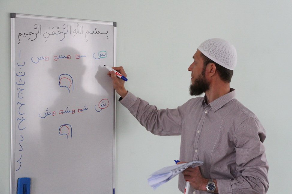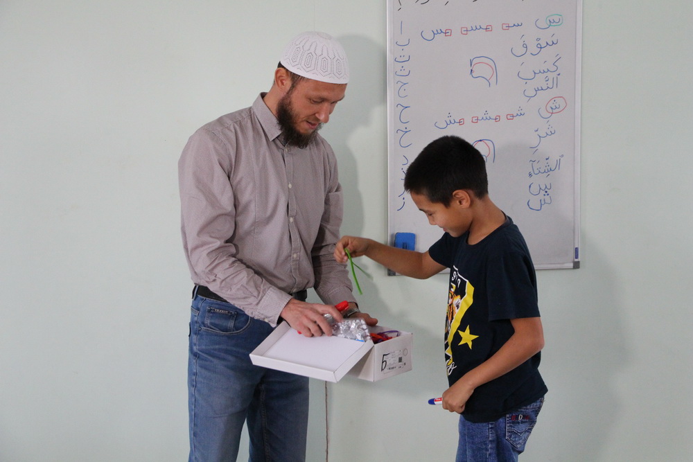 Сейчас вместе с преподавателем они изучают буквы арабского алфавита, учатся правильно произносить их, запоминают, как пишутся в начале, в середине и в конце слова, а также заучивают «Аль-Фатиху» и короткие суры.