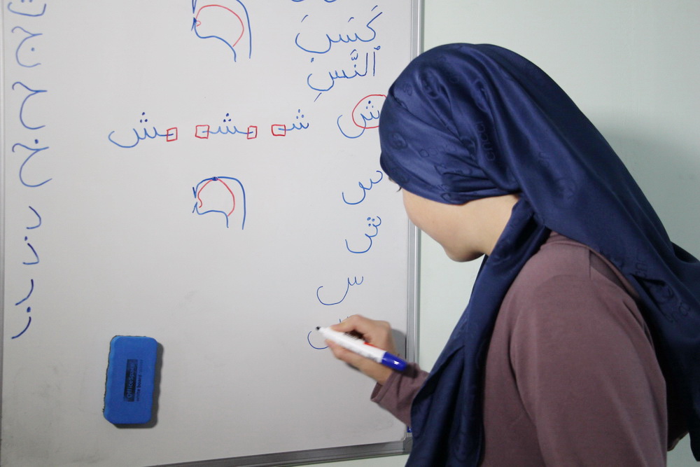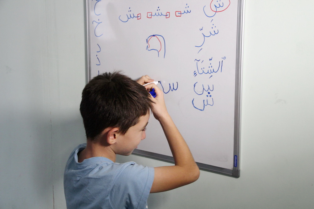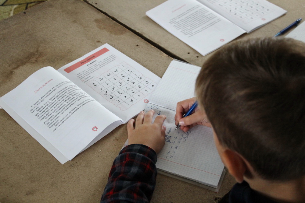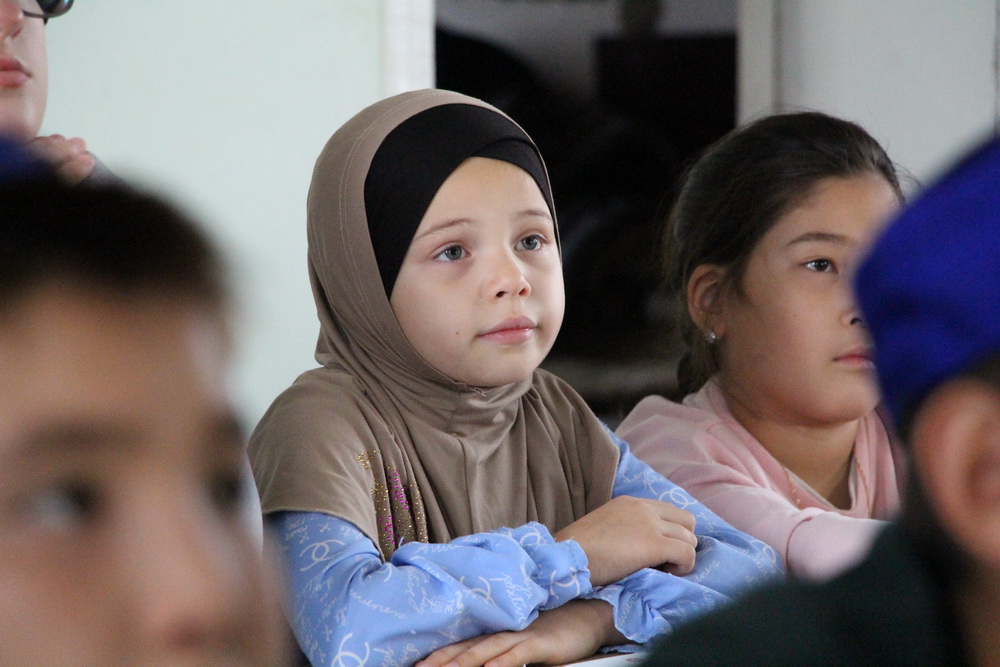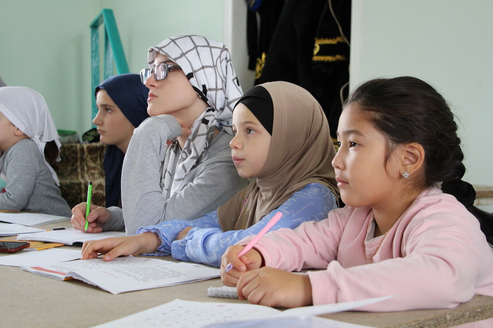 Сейчас вместе с преподавателем они изучают буквы арабского алфавита, учатся правильно произносить их, запоминают, как пишутся в начале, в середине и в конце слова, а также заучивают «Аль-Фатиху» и короткие суры.