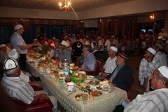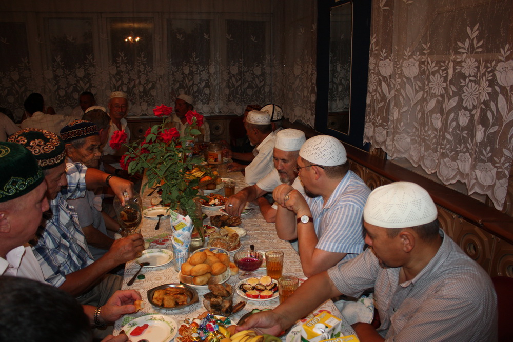 К сожалению, сельская столовая не смогла вместить всех желающих встретиться с муфтием Саратовской области, который вчера вместе со своими соратниками побывал на званном ужине-разговлении. Тем не менее, почти двести человек смогли разделить совместную трапезу и выслушать искренние слова муфтия о проблемах и радостях, о Создателе и Пророке (мир ему), о жизни и смерти.