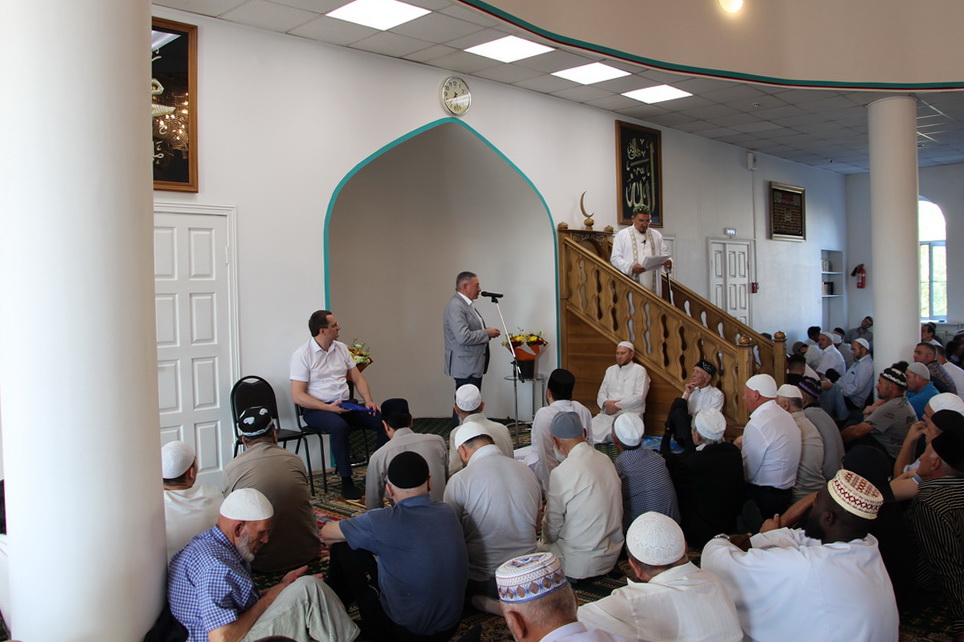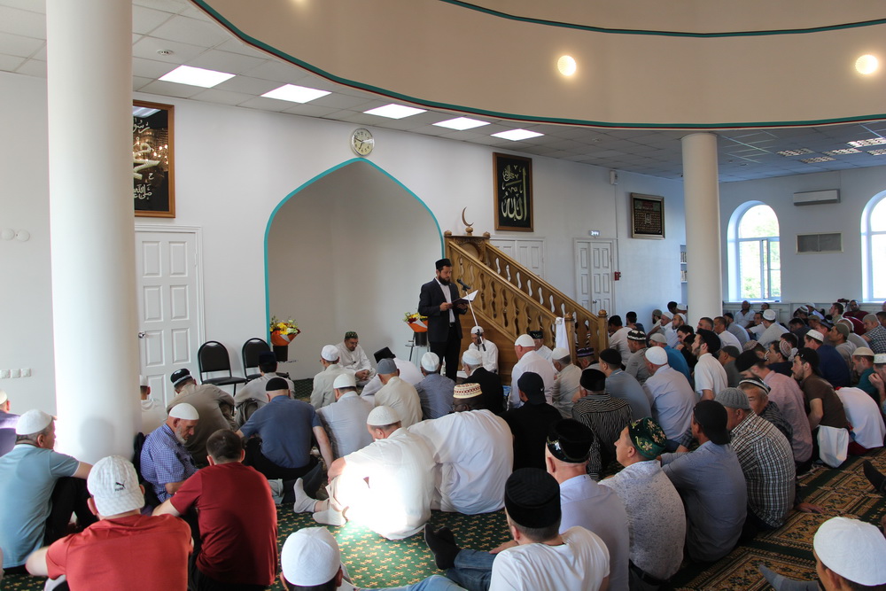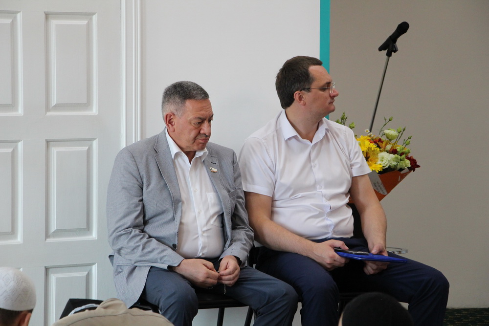 Утром 9 июля были зачитаны поздравления в адрес мусульман по случаю наступления Курбан-Байрама от президента России Владимира Путина, председателя ДУМ РФ и Совета муфтиев России шейха Равиля Гайнутдина, первого президента Татарстана Минтимера Шаймиева, чрезвычайного и полномочного посла Ирана в РФ Казема Джалали, и.о. ректора Болгарской исламской академии Айнура Темирханова, председателя, председателя ДУМ Казахстана Наурызбая кажы Таганулы, муфтиев российских регионов и др. Поздравления от временно исполняющего обязанности губернатора Саратовской области Романа Бусаргина зачитал заместитель министра внутренней политики и общественных отношений Саратовской области Виталий Шустов. Также мусульман с Курбан-Байрамом поздравил председатель Общественной палаты Саратовской области Борис Шинчук.