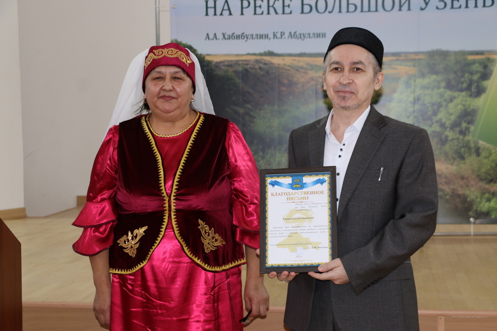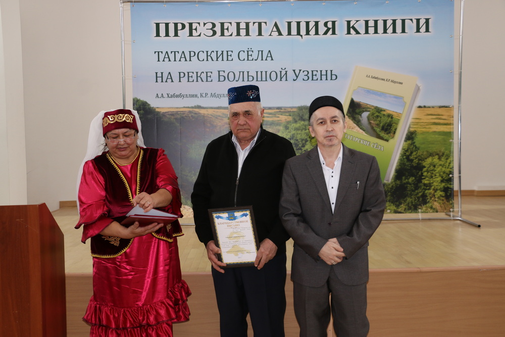 Один из авторов книги «Татарские села на реке Большой Узень», директор медресе «Шейх Саид», кандидат исторических наук Али-хазрат Хабибуллин подробно рассказал, как шла работа в течение трех лет. «Был собран огромный материал, источники подняты из разных архивов, проведены многочисленные интервью с жителями села. Книга стала итогом нашей совместной кропотливой работы. Ее ждал читатель. Книга востребована, пока мы будем хранить историческую память, знать откуда и кто мы, тогда сможем сохранить свою этноконфессиональную идентичность, сможем изучать свою религию и культуру», — рассказал Али-хазрат. Он поблагодарил жителей и выходцев из татарских сел за оказываемую помощь и поддержку. Некоторые из них не дожили до презентации книги об их малой родине.
