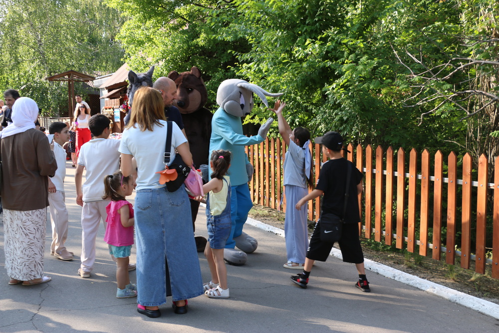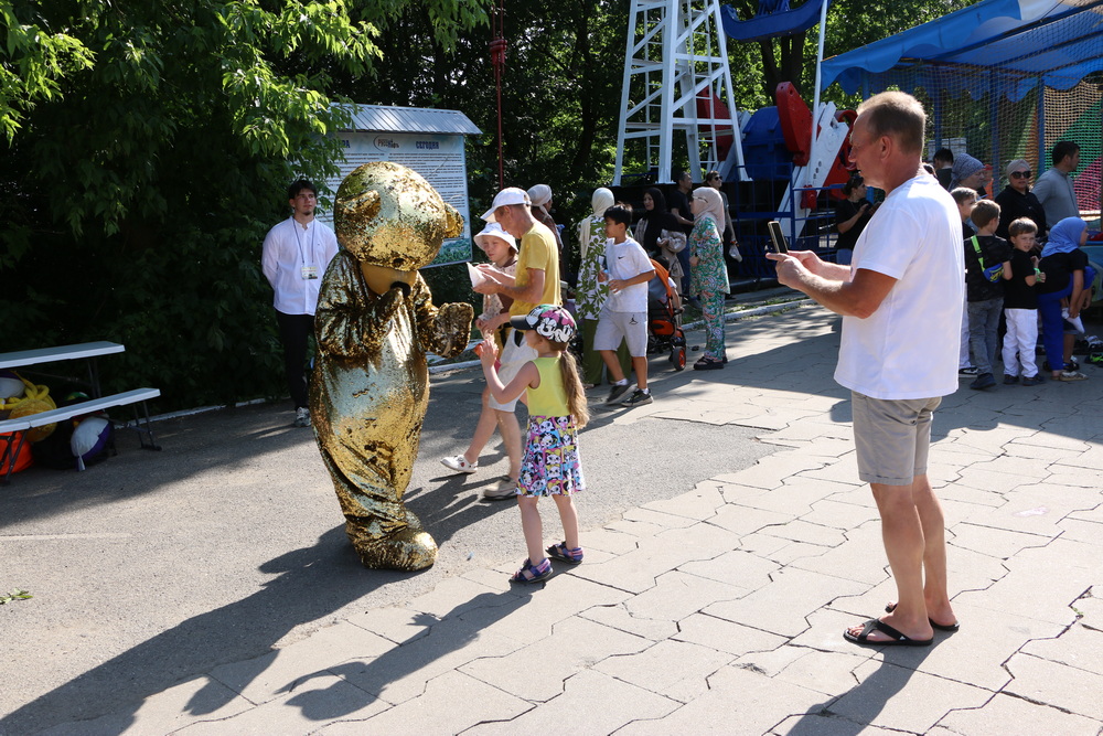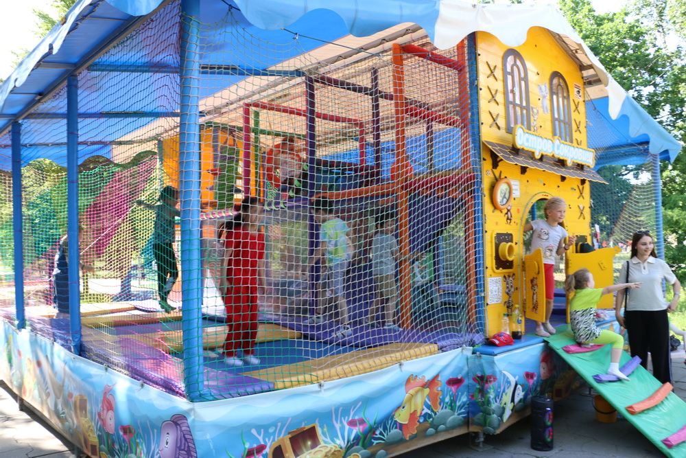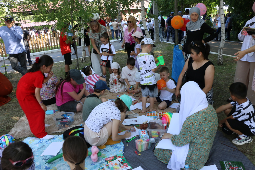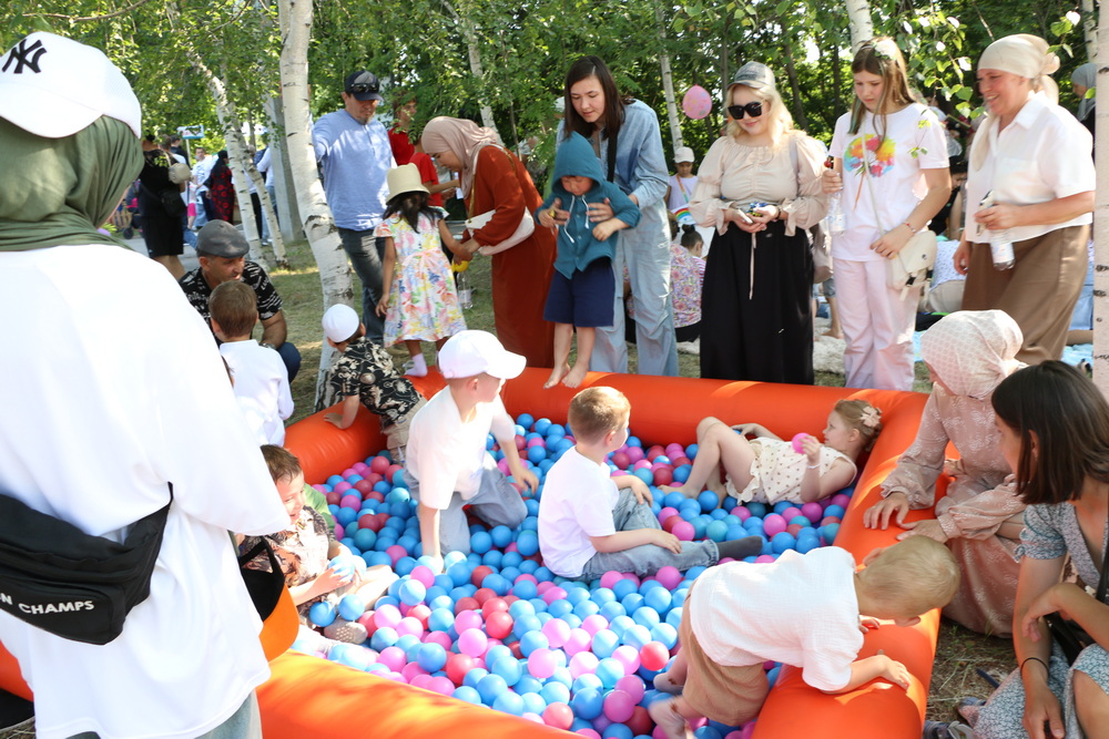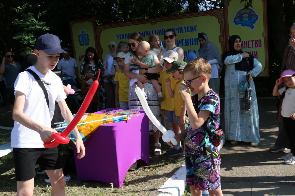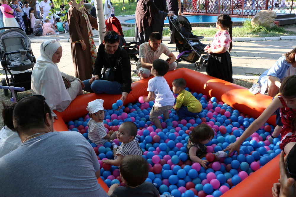 Основная программа праздника была посвящена детям. Поэтому здесь были представлены многочисленные площадки для мальчиков и девочек абсолютно разного возраста. Уже на входе в Национальную деревню гостей встречала тематическая фотозона. Рядом красочные аниматоры предлагали малышам сыграть в подвижные игры и сделать селфи на память. Тут же расположились бассейн с шариками, батут и зона для совсем маленьких, где они рисовали.