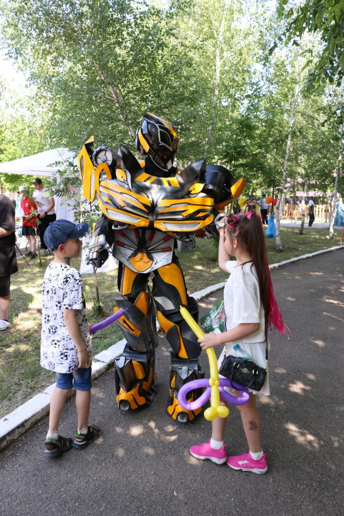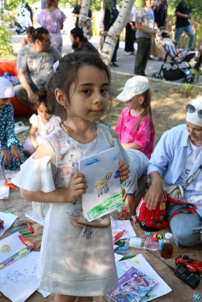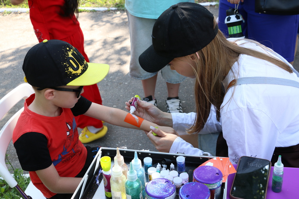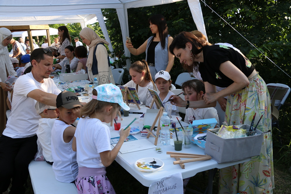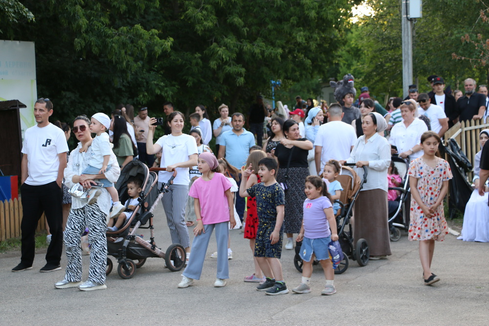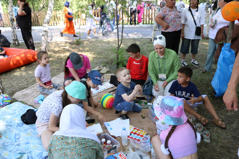 Основная программа праздника была посвящена детям. Поэтому здесь были представлены многочисленные площадки для мальчиков и девочек абсолютно разного возраста. Уже на входе в Национальную деревню гостей встречала тематическая фотозона. Рядом красочные аниматоры предлагали малышам сыграть в подвижные игры и сделать селфи на память. Тут же расположились бассейн с шариками, батут и зона для совсем маленьких, где они рисовали.