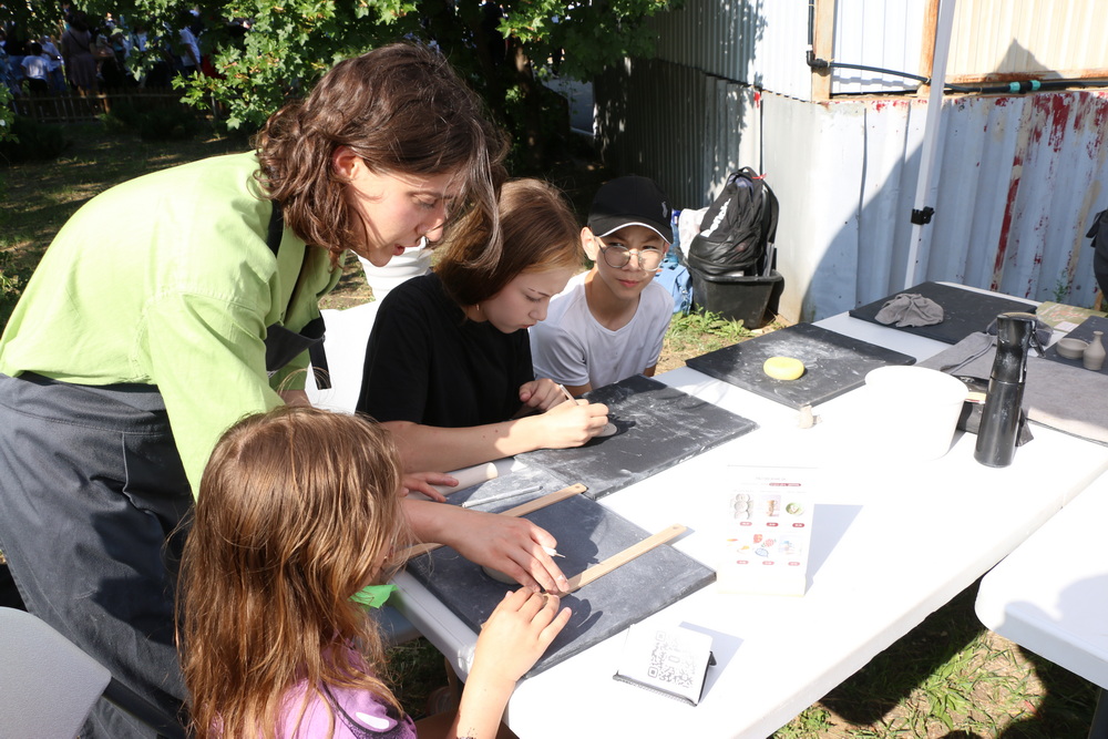 В двух шагах от них работала «Мастерская щедрости». Здесь можно было принять участие в мастер-классе по гончарному мастерству, лепке из глины и раскрашиванию тарелок, научиться создавать праздничные открытки и сувениры. Также детям предлагалось красиво написать небольшую картину, расписать имбирные пряники в форме барашка, своими руками сделать игрушки, бантики, браслеты и даже деревянный самолетик. Кроме этого, юные гости праздника сыграли в игры, которые помогают больше узнать об экологии и переработке вторсырья.