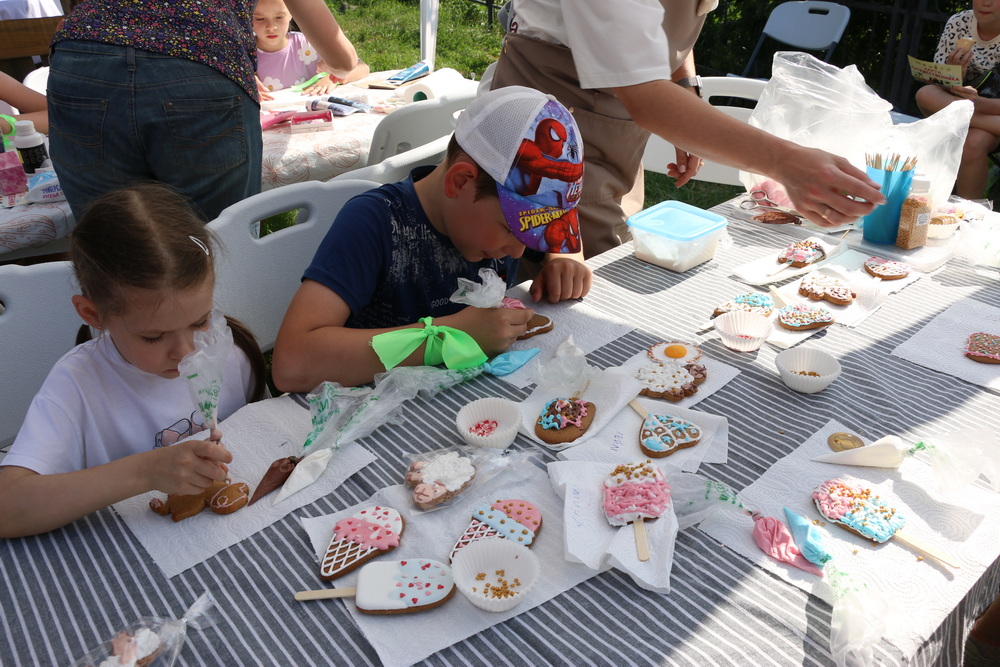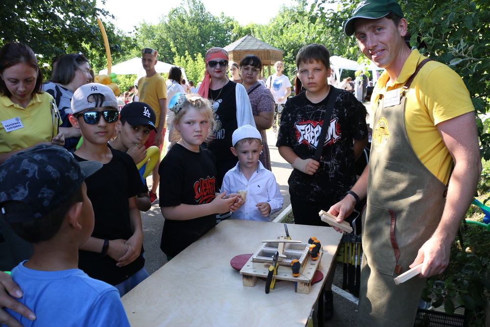 Дети также радовались воздушным шарикам и аквагримму, которые создавали праздничную атмосферу. Мальчики и девочки наслаждались мороженым, сладкой ватой и попкорном, которые им давали за «монетки добра» (каждый ребенок получал их за активность в играх и викторинах). Кроме этого ребята играли в аэробейсбол, деревянные крафт-игры, разгадывали головоломки, стреляли из лука и катались на лошадях.