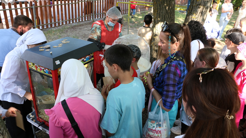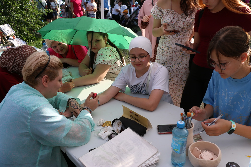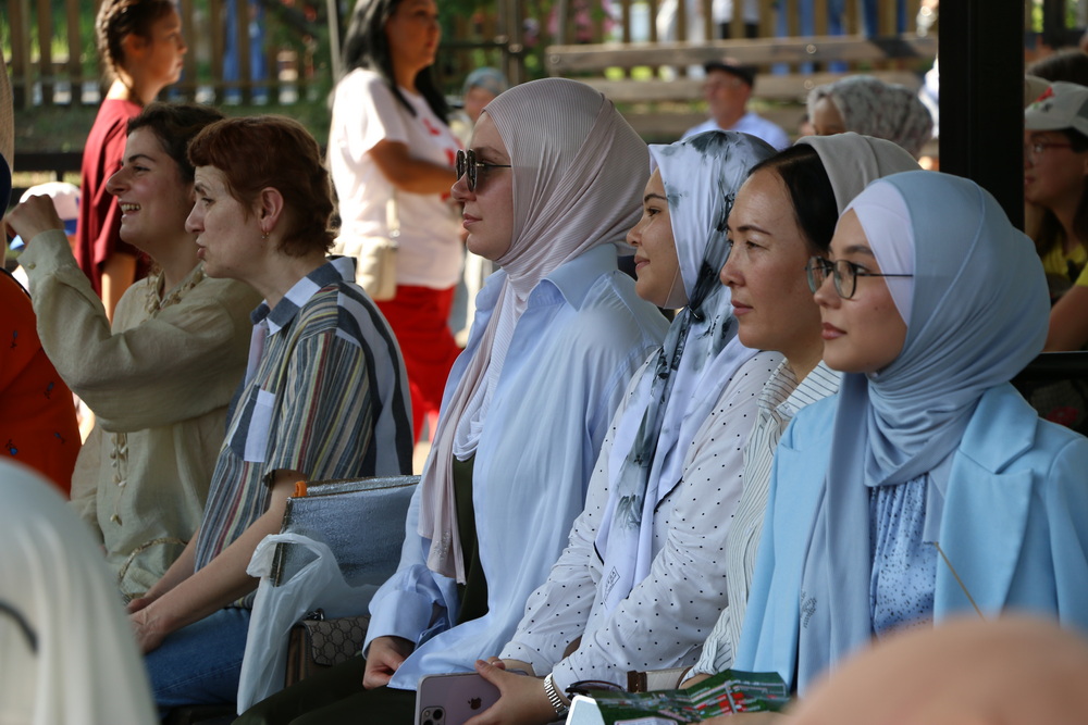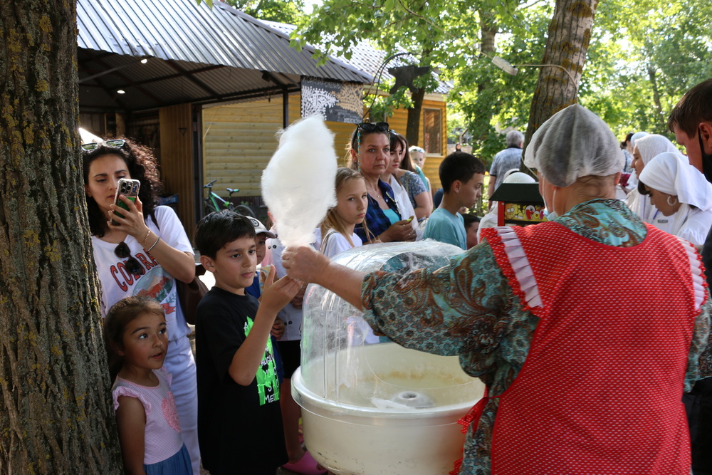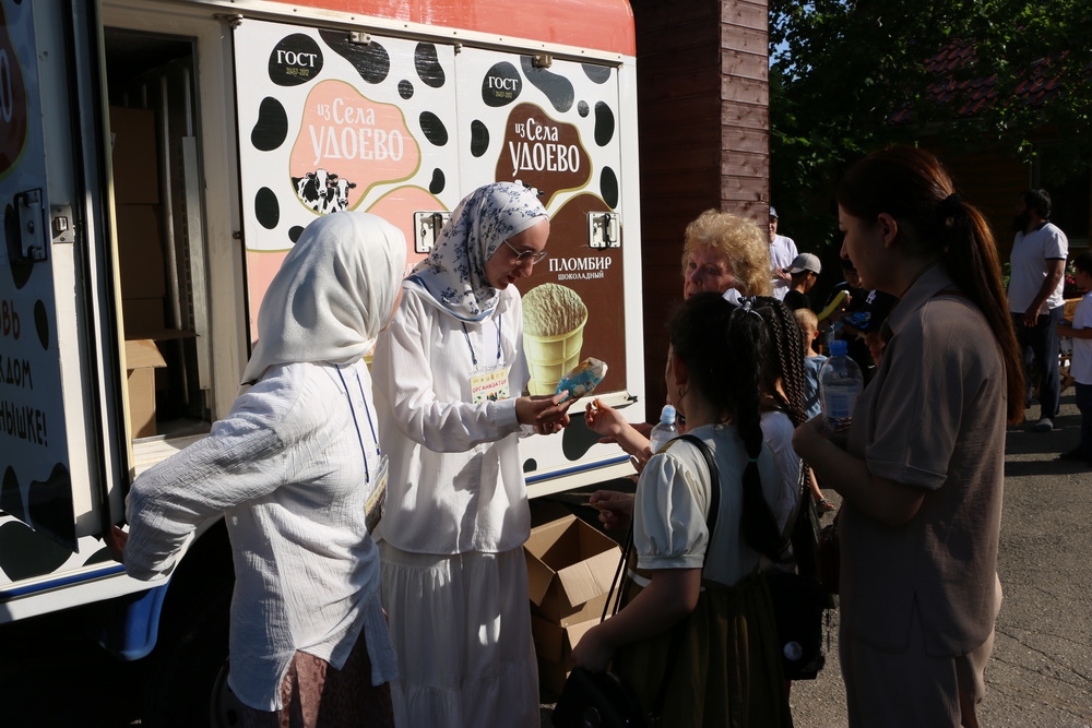 Вдоль основной аллеи раскинулись ряды «Базара милосердия» — здесь можно было приобрести сувениры, шамаили, платки и изделия ручной работы. В национальных подворьях всем предлагали отведать праздничные блюда.