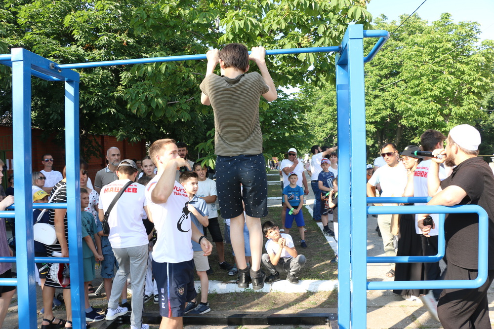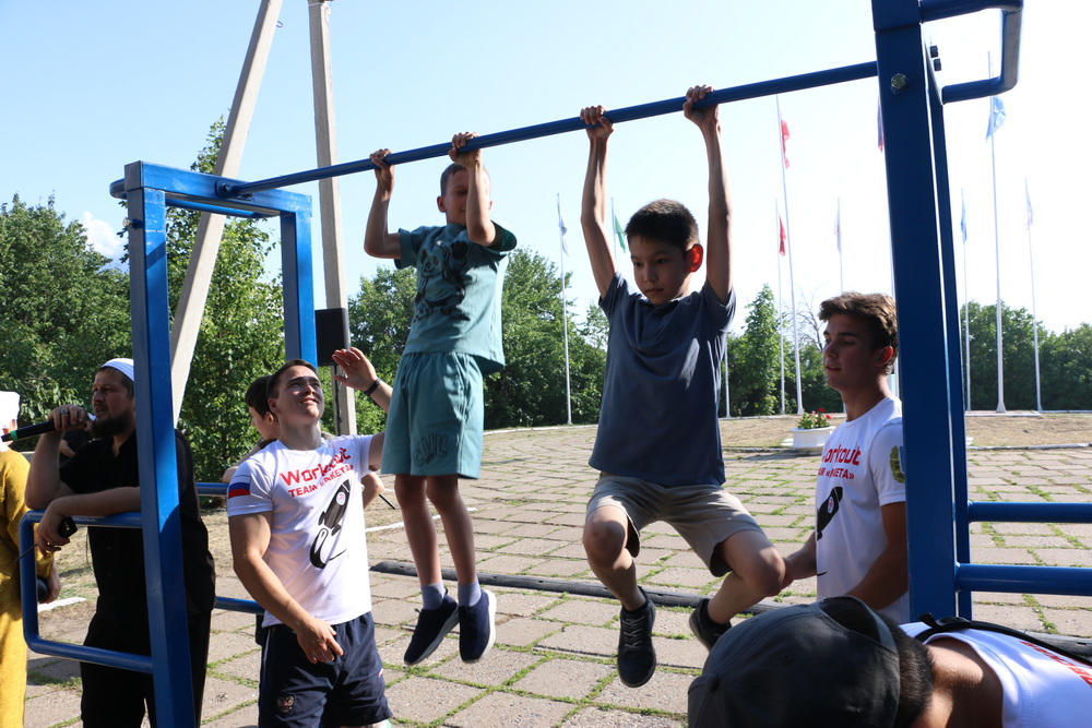 Отдельная площадка была посвящена силовому троеборью. Сначала саратовская команда по воркауту показала, что можно выполнять на турнике. После этого подросткам предложили принять участие в турнире. Победители и призеры были награждены призами и грамотами.