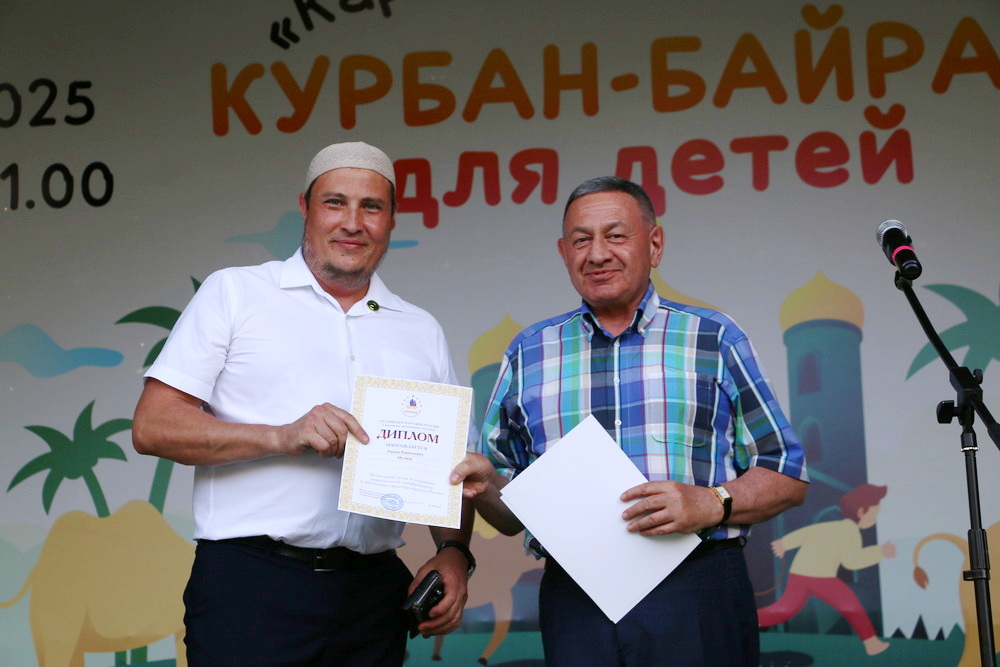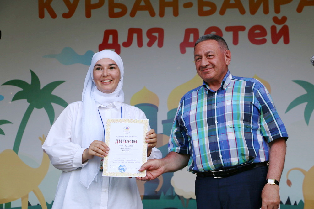 В ходе официальной части членов оргкомитета праздника «Курбан-Байрам для детей «Караван добрых дел» наградили дипломами Ассамблеи народов России за большой вклад в сохранение национальной самобытности и укрепление единства народов России.