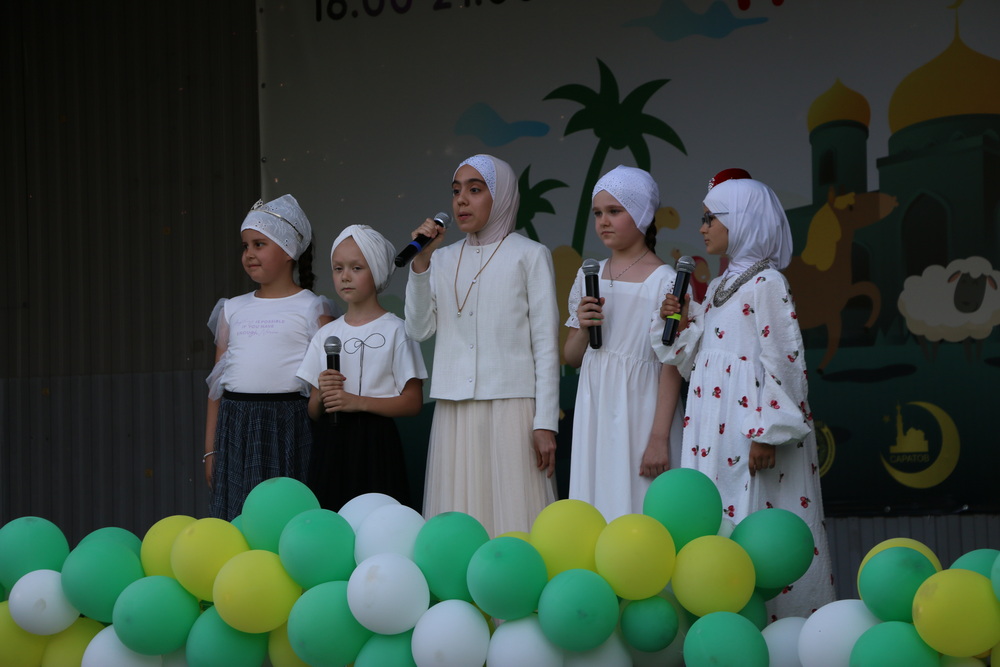 В это время на главной сцене выступали национальные коллективы. Также свои навыки боевых единоборств продемонстрировали саратовские спортсмены. После этого дети принимали участие в познавательной викторине и получали подарки за чтение коранических аятов и стихов.