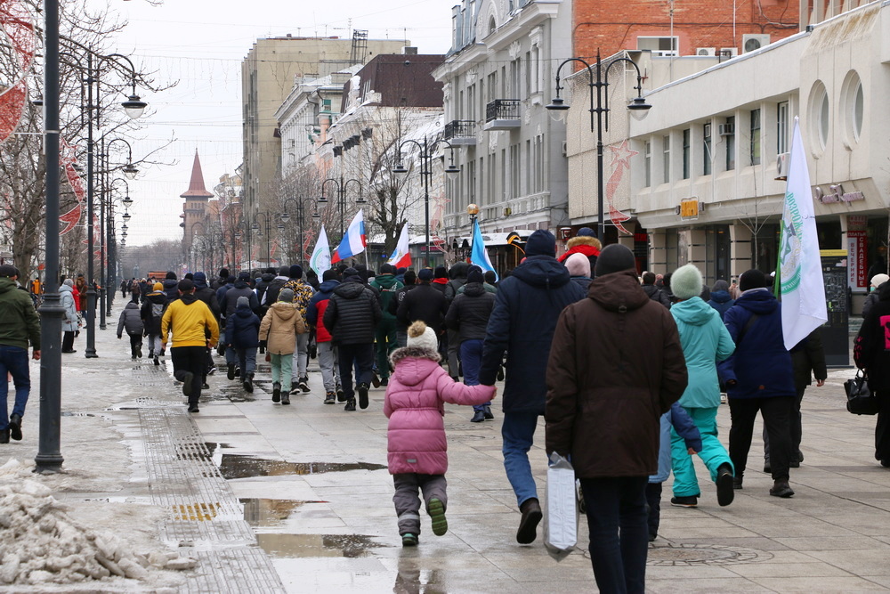 В оздоровительно-просветительском пробеге принимали участие люди разных возрастов, национальностей и конфессий. После разминки возле саратовского цирка, участники мероприятия с российским триколором, флагами Саратовской области и общественных организаций направились по проспекту Столыпина в сторону консерватории.