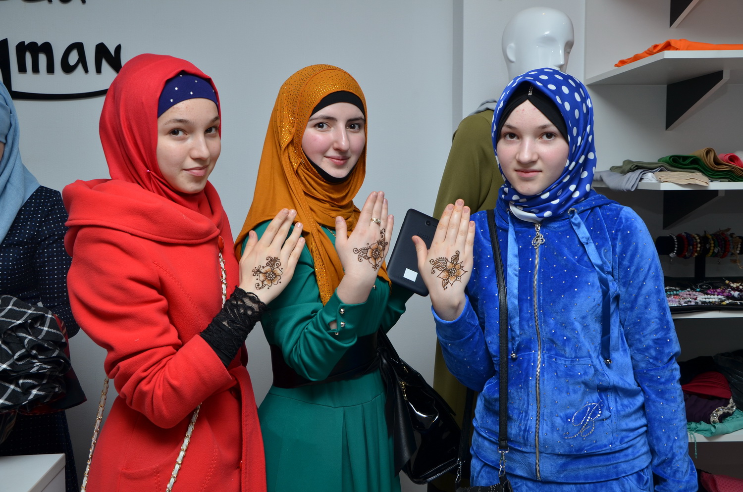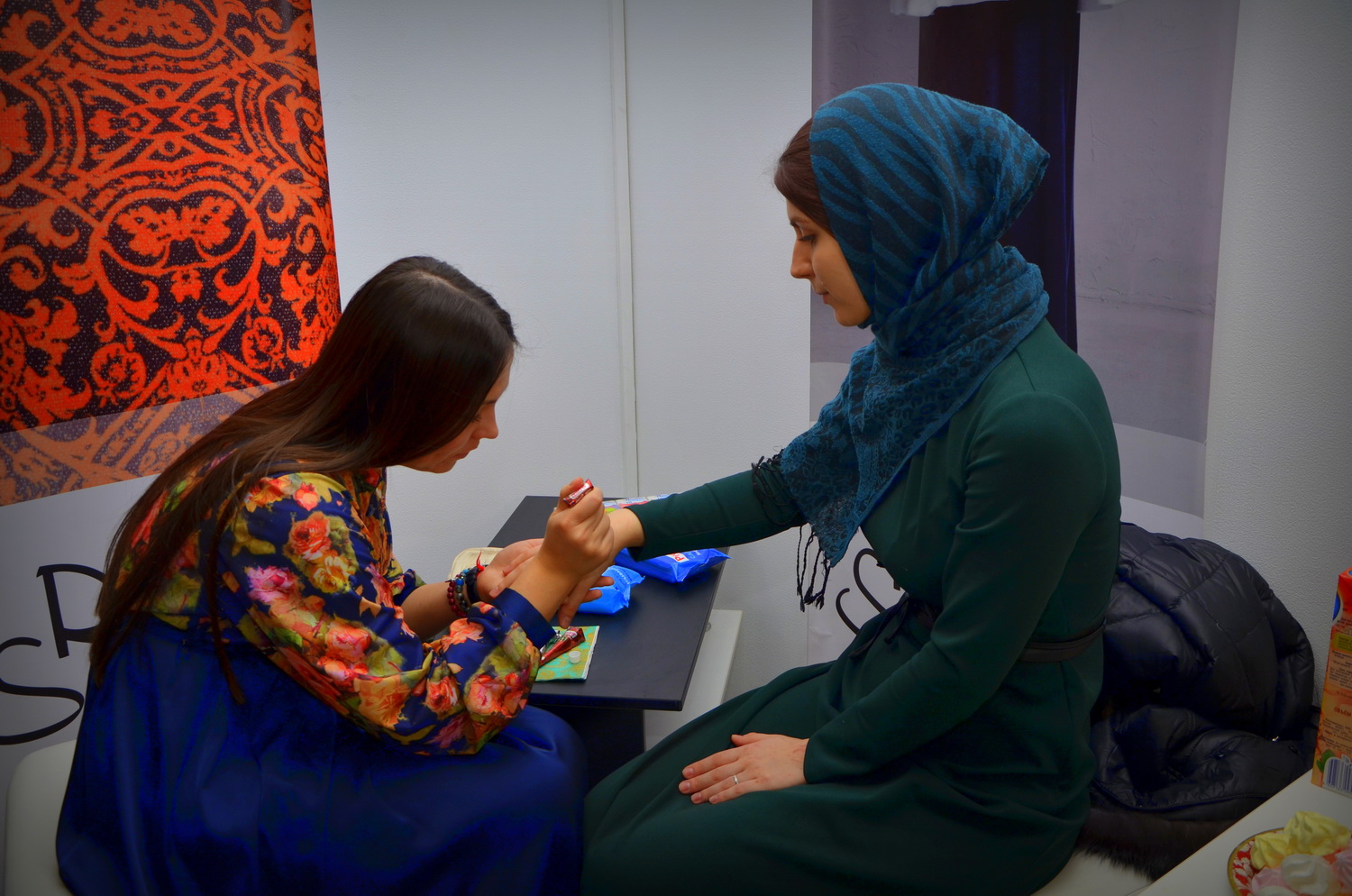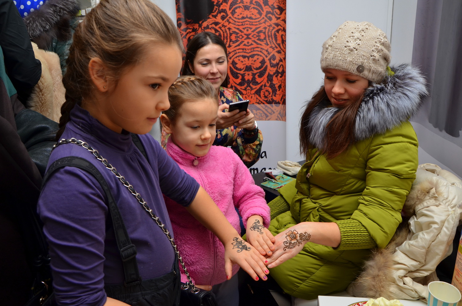 В этот день желающие смогли украсить себя узором из хны (мехенди) от Розы Фаизовой, опробовать на себе натуральную косметику компании TianDe. Кроме того мусульманки поделились с гостьями различными способами повязывания платка.