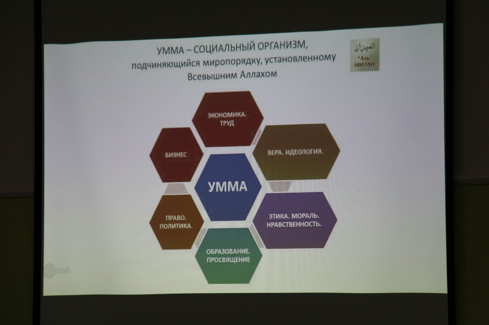По его словам, мусульманская община — это социальный организм, включающий в себя идеологию, образование, экономику, труд, бизнес, а также этику, мораль и нравственность. В каждой из этих категорий необходимо соблюдение принципов и норм шариата.
