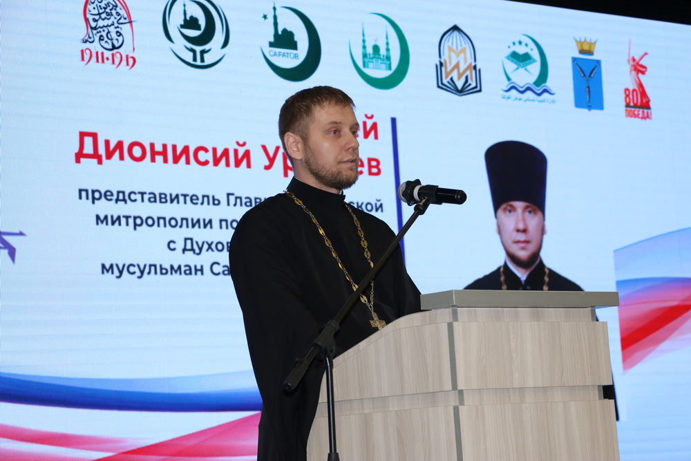 Успехов в работе конференции пожелал представитель главы Саратовской митрополии по контактам с Духовным управлением мусульман Саратовской области иерей Дионисий Уразаев. Он зачитал приветствие от лица митрополита Саратовского и Вольского Игнатия.