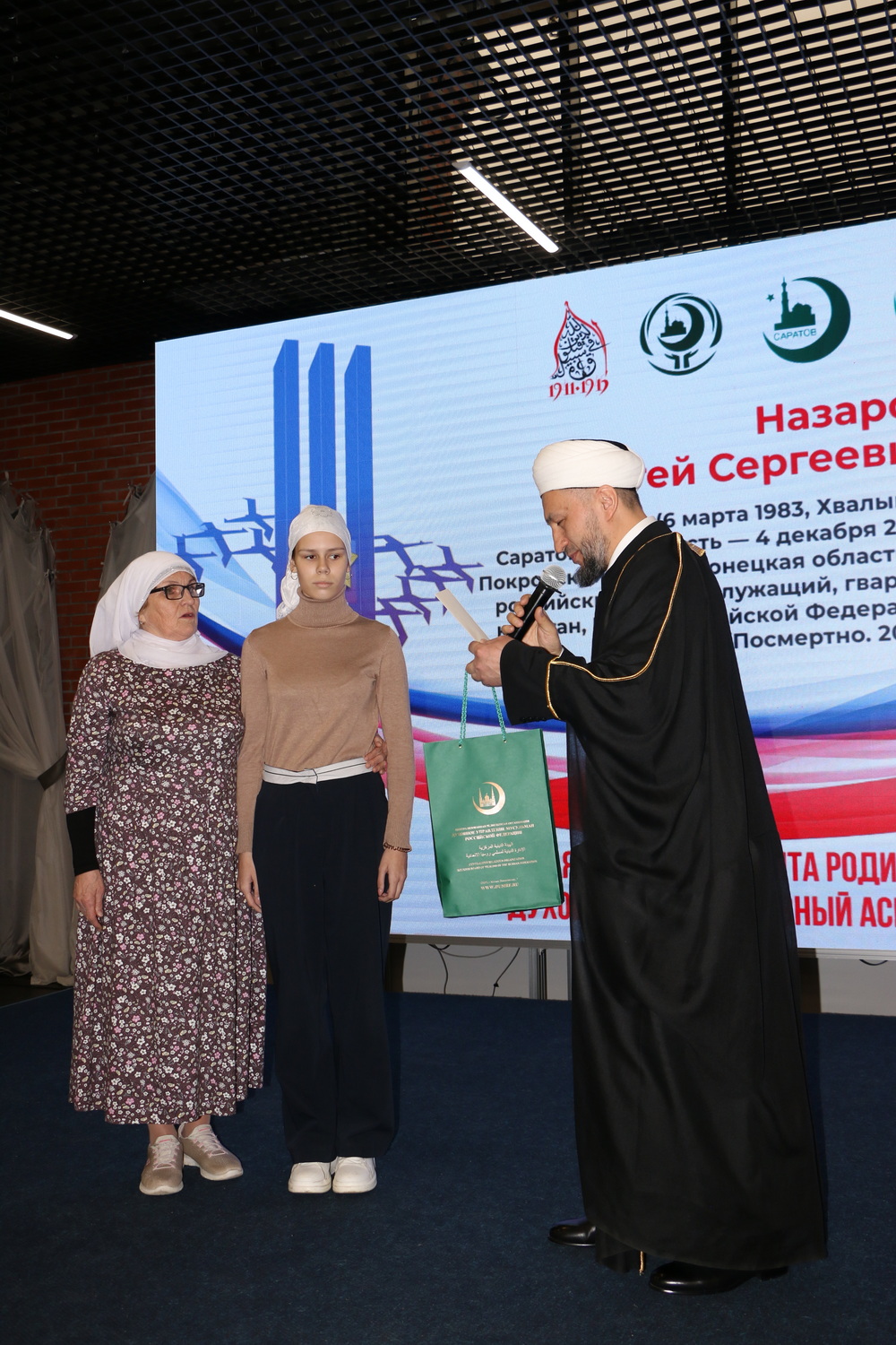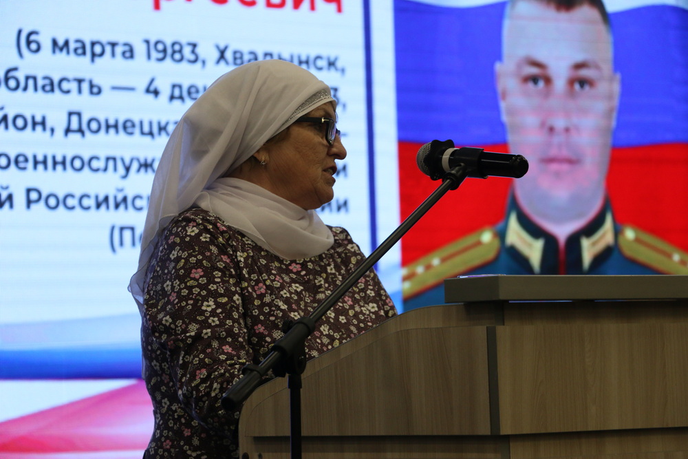 Одним из самых эмоционально трогательных моментов стал рассказ Зяйтуны Назаровой, мамы участника СВО, Героя России Сергея Назарова (награжден посмертно). Она напомнила о качествах защитника Отечества, его мужестве и подвиге. Расим-хазрат Кузяхметов отметил, что гвардии капитан, герой России Сергей Назаров «родился мусульманином, жил мусульманином и погиб мусульманином, похоронен на мусульманском кладбище в Хвалынске». Муфтий ДУМСО поблагодарил Зяйтуну Исхаковну за воспитание такого сына, пожелал, чтобы Всевышний Аллах облагодетельствовал его Своей милостью. Также Расим-хазрат напомнил, что мама Героя России в числе 45 жителей Саратовской области поедет в Хадж по благотворительной путевке. Напомним, в этом году решением главного муфтия шейха Равиля Гайнутдина при поддержке известного мецената Сулеймана Керимова выделены благотворительные путевки в Хадж для участников СВО и членов их семей.