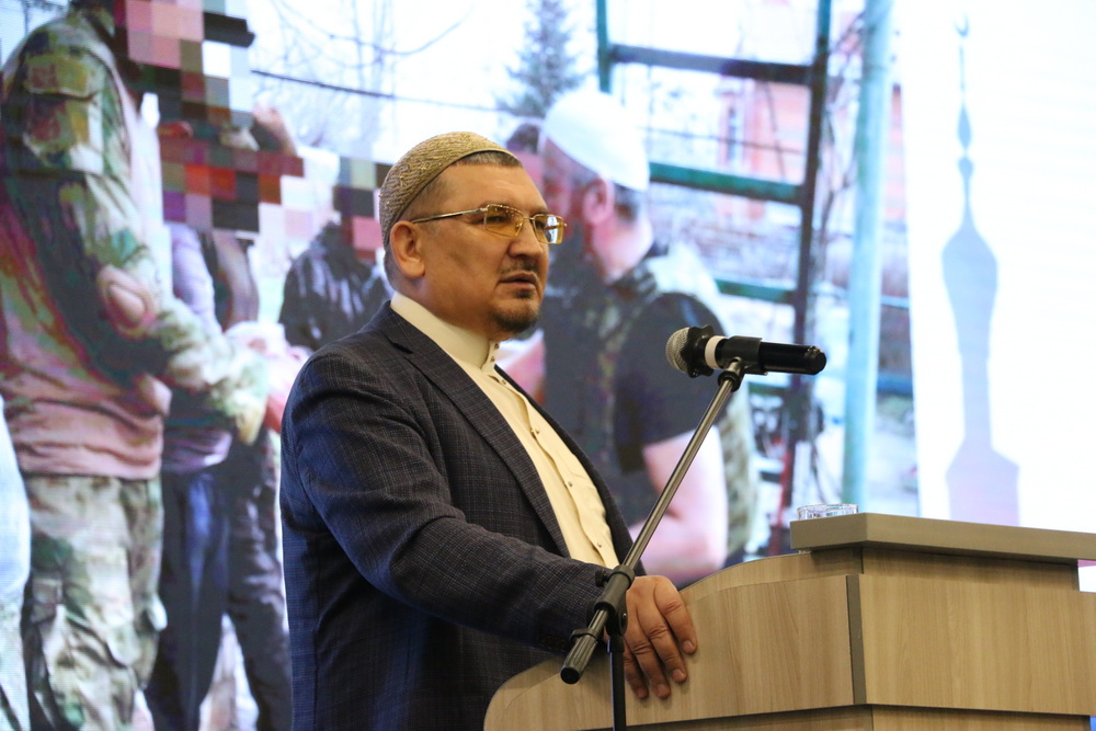 В своем выступлении член Совета муфтиев ДУМ РФ, глава ДУМ Поволжья Мукаддас-хазрат Бибарсов отметил, что с первых дней СВО мусульмане Саратовской области инициировали работу по духовной и гуманитарной поддержке мобилизованных единоверцев. Это посещение военных госпиталей, передача гуманитарной помощи раненым, сбор материалов и вещей для отправки на передовую, участие имамов и имамов-мухтасибов в проводах военнослужащих и похоронных процессиях. Представители ДУМ Поволжья – имам-хатыб Саратовской соборной мечети Рустам-хазрат Мухитов и руководитель коранического центра «Зейд бин Сабит» Ильяс-хазрат Ильясов – с начала проведения специальной военной операции выезжали в зону СВО с гуманитарной миссией, проводили духовные беседы с мусульманскими военнослужащими, привозили им религиозную литературу, коврики и халяль-пайки. В декабре 2024 года они заключили контракт и отправились в зону боевых действий в качестве имамов-капелланов в составе спецназа «Ахмат».