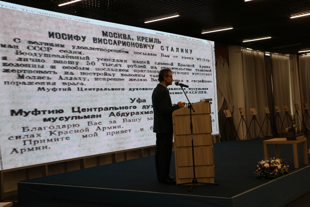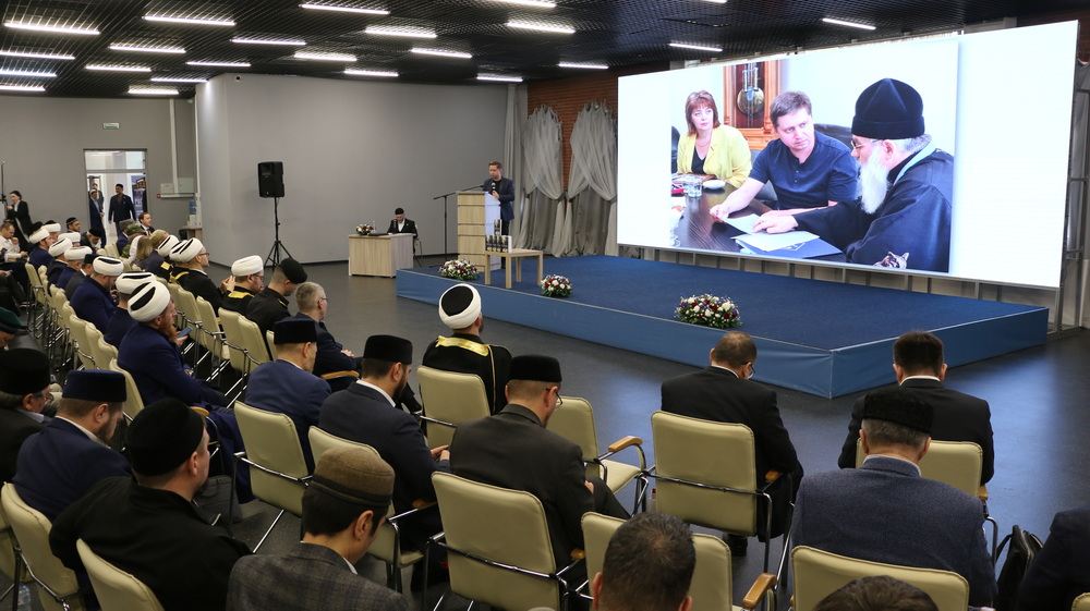 Приветствие в адрес участников конференции от председателя Духовного управления мусульман Российской Федерации главного муфтия шейха Равиля Гайнутдина зачитал первый заместитель председателя ДУМ РФ, ректор Московского исламского института, муфтий Дамир-хазрат Мухетдинов. «На протяжении тысячелетней истории наше Отечество пережило много войн и нашествий, но наши предки всегда находили в себе силы оставаться верными своей родной земле, религии и Родине», — говорится в приветственном адресе.