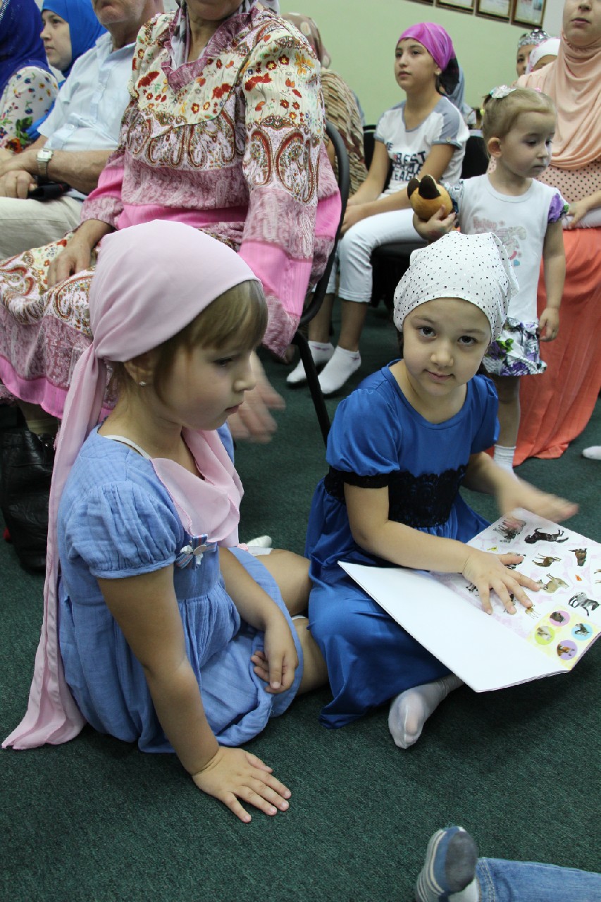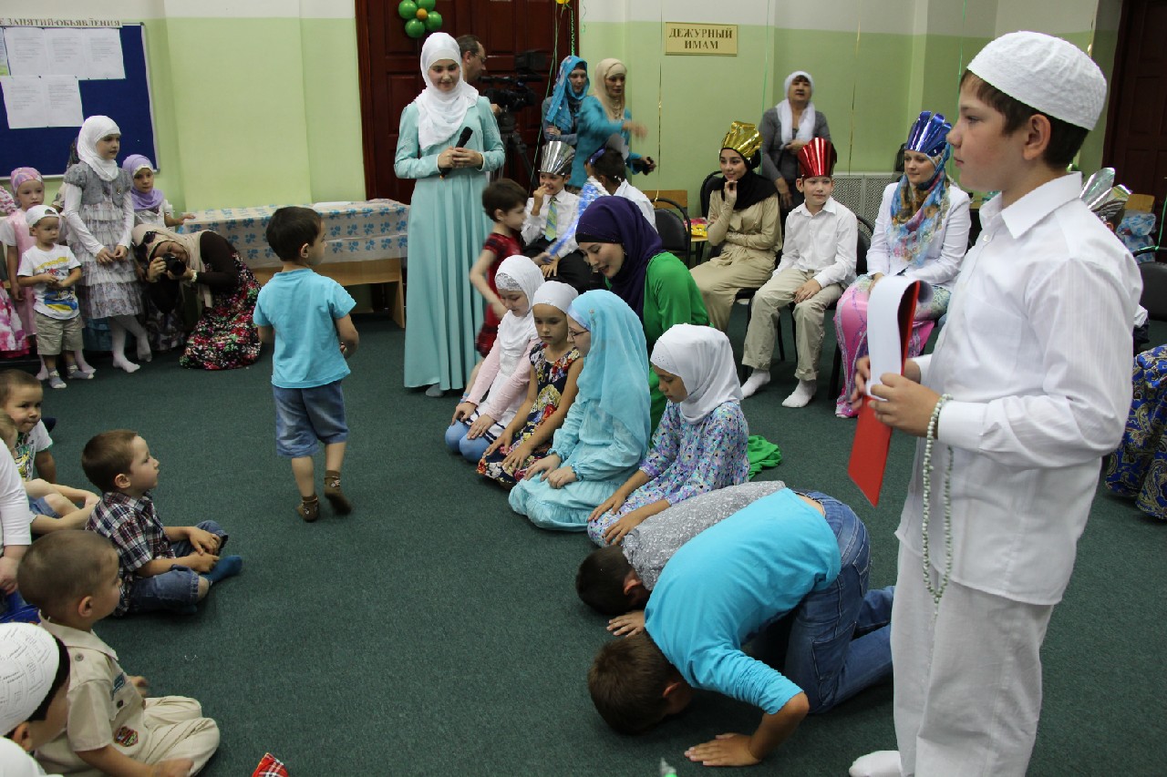 После того, как прозвучали стихи о Рамадане, мусульманки сыграли с ребятами в подвижные игры. Разбившись на две команды, дети собирали продуктовые наборы для ифтара, по ходу узнавая, что лучше употреблять в пищу для разговения. Кроме этого, в игре «Море волнуется» малыши продемонстрировали гостям праздника фигуры намаза.