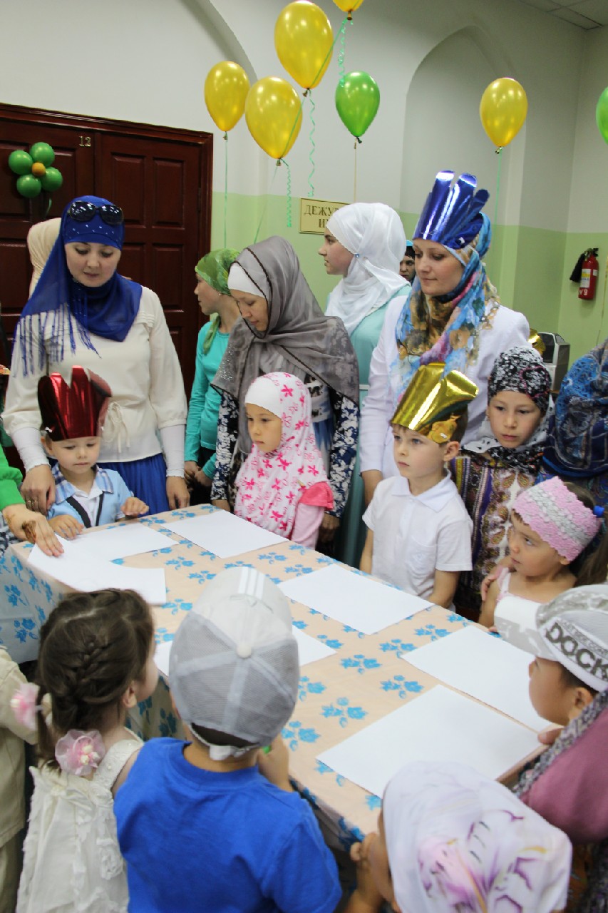 В выходной день родители также приняли участие в празднике — вместе со своими детьми взрослые должны были описать изображения на картинках и найти их связь с Рамаданом. Справившись с заданиями, они получили коробочки с финиками – одним из символов Благословенного месяца.