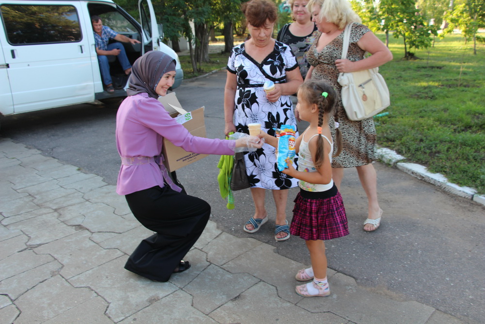 Актив Духовного управления области и девушки из женской организации «Родник старались, чтобы ни один малыш на этом празднике детского раздолья не остался без сладкого угощения и шариков с надписью «Ураза-байрам». В ходе мероприятия было роздано более 5000 штук мороженого.