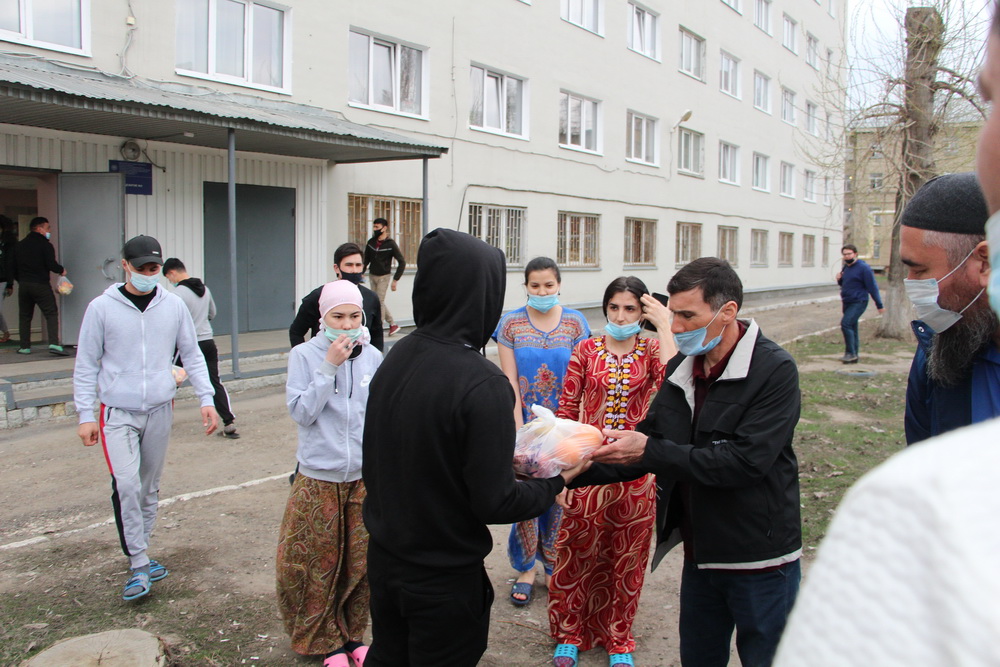 Ежедневно имамы и активисты Саратовской Соборной мечети развозят 200 комплектов для постящихся единоверцев. В них входят плов, хлеб, финики и фрукты. Доставка производится по очередности, согласно плану-графику.